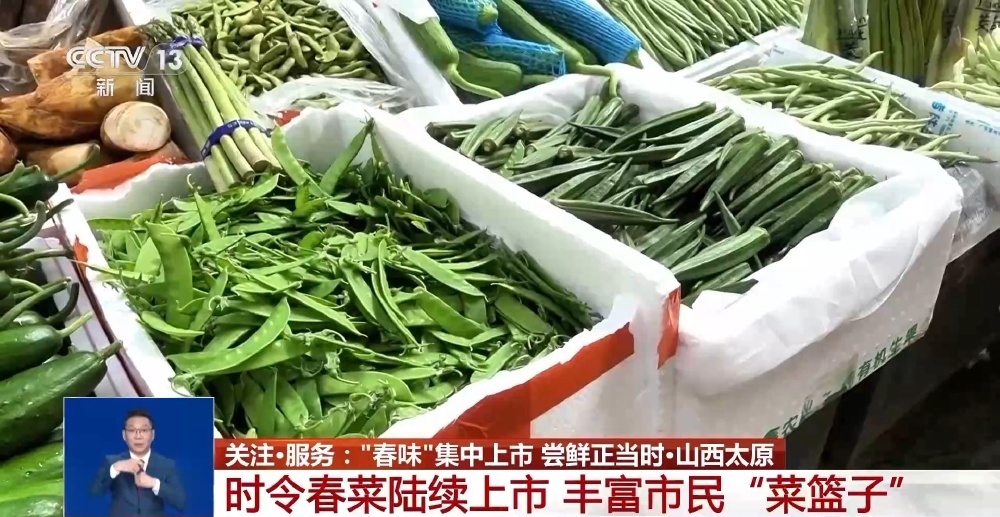 而在山西太原市,农贸市场、超市里,不仅有本地的春菜,还有来自南方的荷兰豆、茭白等时令蔬菜。
