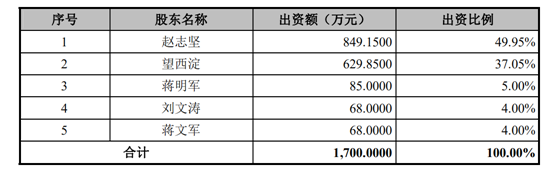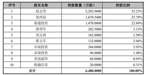 其中,赵志坚、望西淀、蒋明军、刘文涛、蒋文军均为自然人股东,卓瑞投资与永瑞投资为员工持股平台。美旭超华、锐趟信息虽然在2017年11月“突击入股”且股东身份可疑,但由于持股比例较少暂时忽略不计。