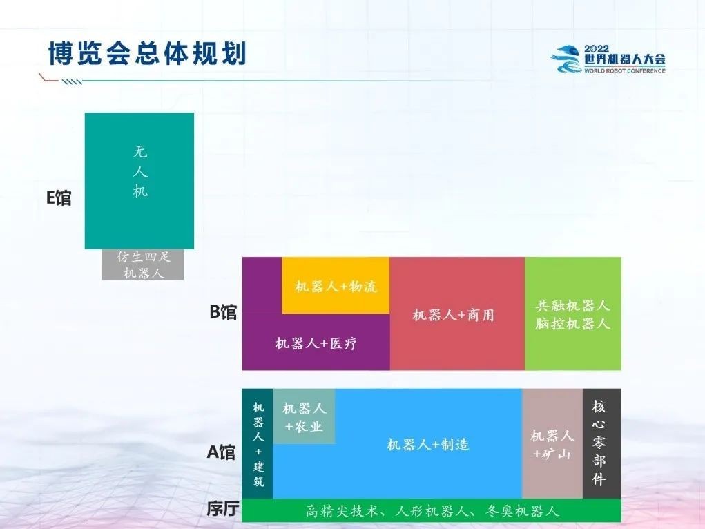 A馆:机器人+农业、机器人+建筑、机器人+制造、机器人+矿山、核心零部件专区