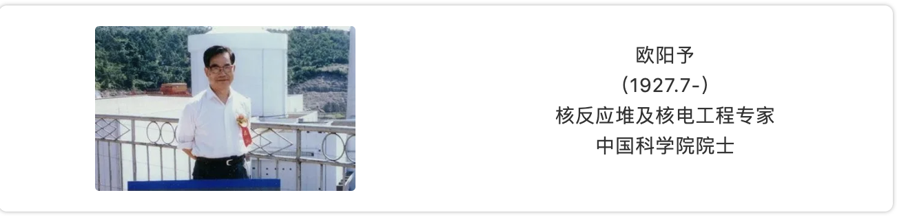 欧阳予是中国核反应堆及电核电工程专家、军用生产核反应堆的设计总工程师、秦山核电站的总设计师。