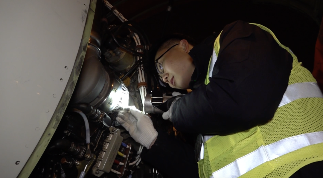 赵昊祥说:“今年也是我保障C919的第一个春运,毕竟是我们国家自主研制的大飞机,所以心里还是有很多自豪感,感觉这是自家的孩子,所以在维护上我们会像对待自己的孩子一样精心呵护它。”