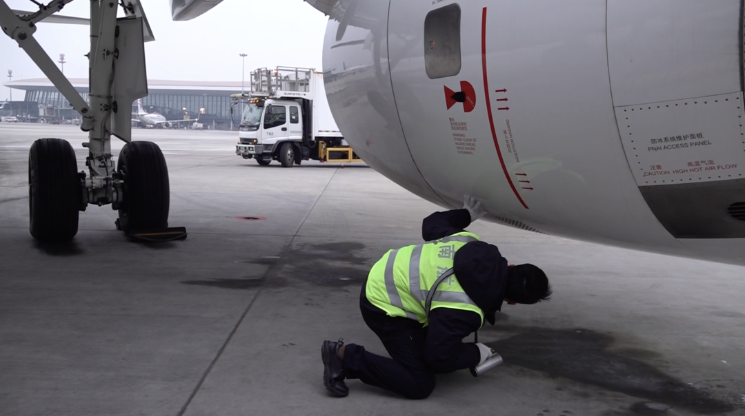 这架飞机在一个半小时后就要飞往长沙,这意味着机务团队必须在一小时内完成上百项检查项目。赵昊祥介绍,日常检查严格按照工卡逐步操作,完成一项记录一项,仅绕机检查就有上百个步骤。