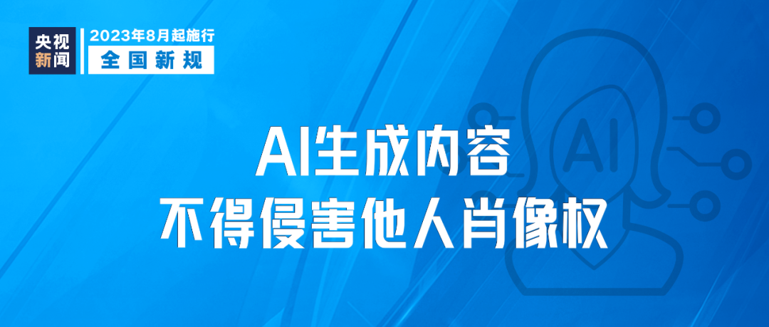 《生成式人工智能服务管理暂行办法》8月15日起施行,提供和使用生成式人工智能服务应当尊重他人合法权益,不得危害他人身心健康,不得侵害他人肖像权、名誉权、荣誉权、隐私权和个人信息权益。