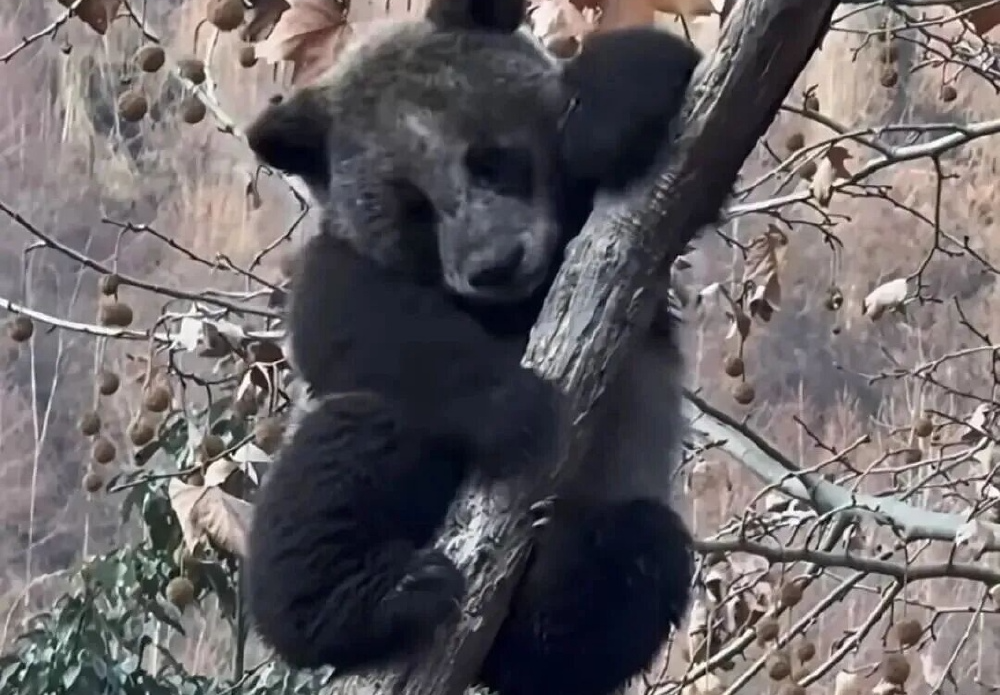 名为“苏锦崽”的它趴在树枝上,身上的白色皮毛染得“黢黑”,小脸上几乎看不出原本的颜色,被称为“黑煤球”“黑熊精”“挖煤小熊”“全网最黑大熊猫”。