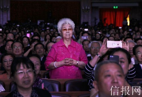 演出结束,田华老师从桌位上站立起来,心情久久不能平静