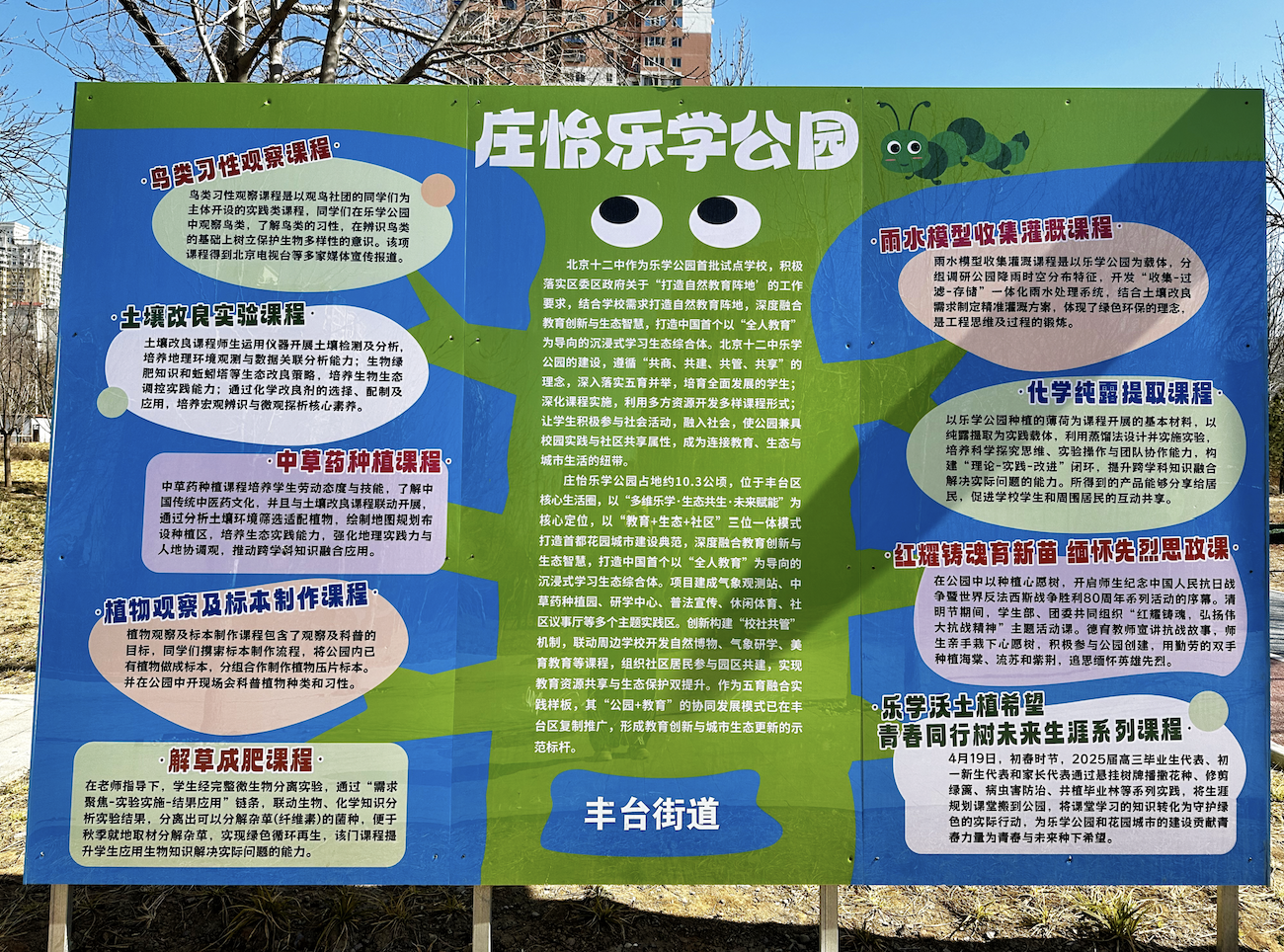 而如果仅仅是这些,恐怕您未必觉得新鲜。的确,“乐学”二字才是这座公园的亮点。2025年,丰台区发布《乐学公园三年行动计划》,庄怡乐学公园成为首批先行试点公园。丰台街道办事处副主任于烨说,改造后,这里不仅全龄友好,还实现了全龄乐学。