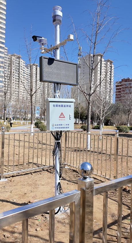 浦仕毕:现在种了一些中草药在里面,我们也借这个中草药,让学生们做一些劳动教育、植物观察,针对不同的菜,做一些土壤改良、植物生长的对比实验。最后,孩子还把中草药做成香囊。更那边一点,是中科院地理资源所给我们弄的一个生境监测系统,监测二氧化碳、PM2.5、负离子浓度、风速、雨量等等,让学生在生境数据的支持下去做植物生长、鸟类活动的一些研究,也给我们的学生提供了一个跨学科实践学习的场景,另外也能培养孩子们生态保护的意识。