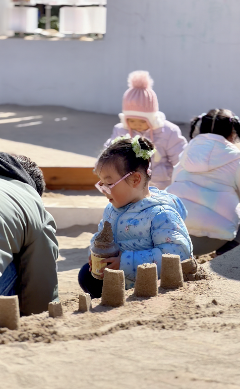 春天里赶上了个大晴天,人们也雀跃起来。上午九点半,丰台庄怡乐学公园南北两区的儿童沙坑里,小朋友的挖掘机已经开动,沙堡已经打上地基。