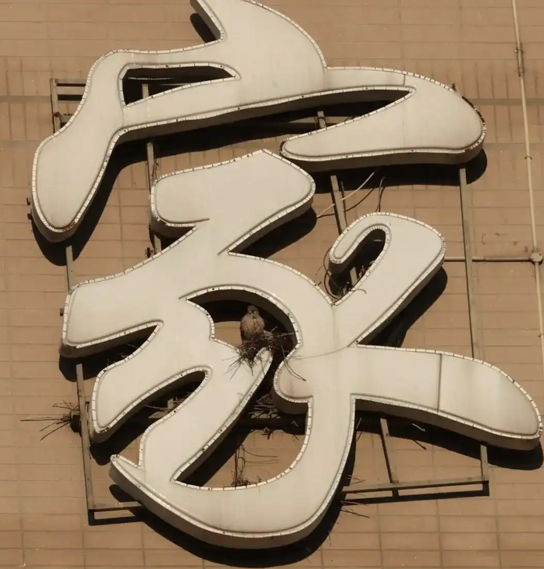 浦仕毕:就恰好在那个“家”字上面找着了红隼,是特别惊喜的一个发现,特别有意义,红隼在“家”里面筑了一个“家”,我们当时说这个鸟实在太会选地方了!这一年(2025年)这一对红隼在里面孵化了总共5只小鸟,夏天的时候5只小鸟成熟了,就飞走了。这两天我们又来公园,这个红隼又回来了,可能现在是雄鸟回来考察地方了。