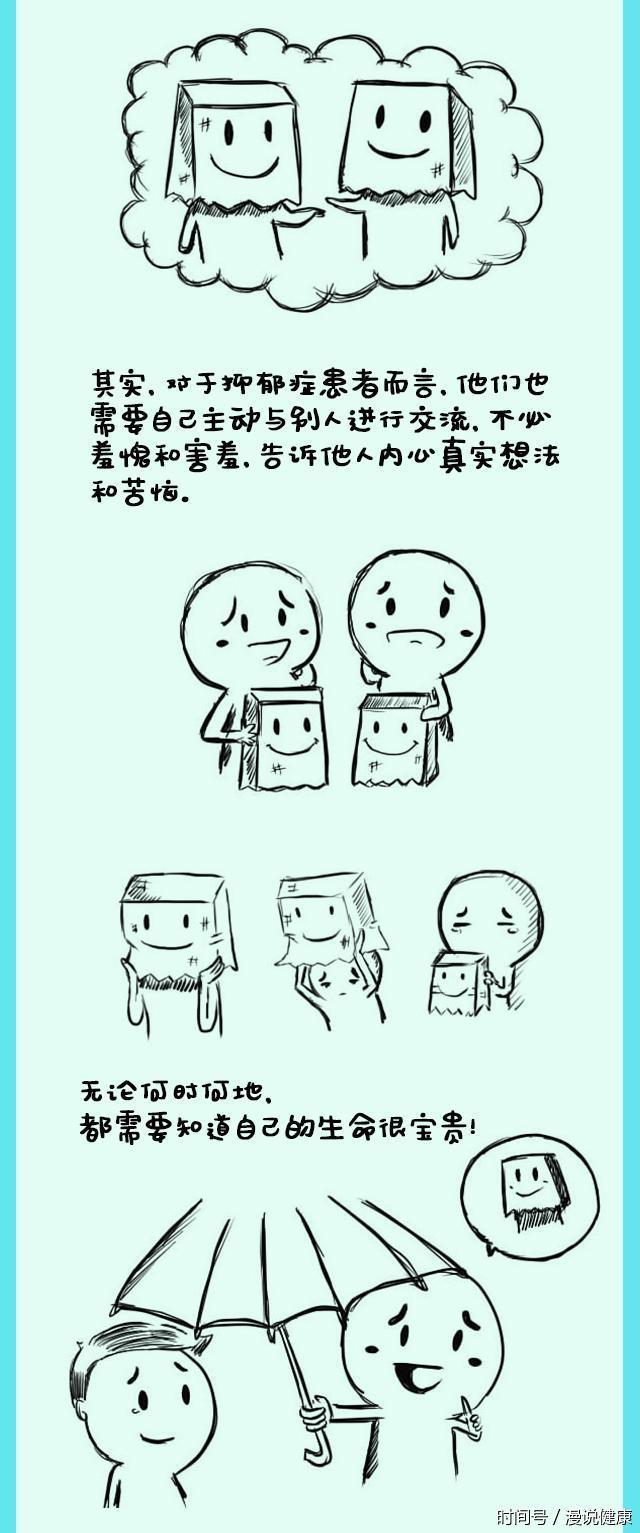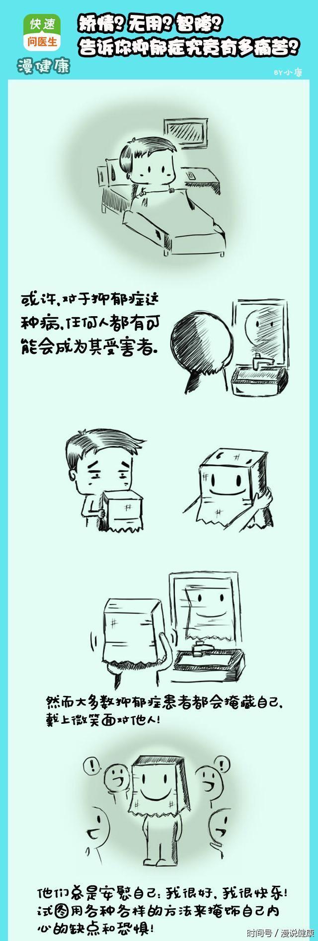 抑郁症就是侨情!你心理那么脆弱,你自杀对得起你父母吗?亏你还是个大男人,这点心理素质!不少人对于抑郁症起初都有这些想法。然而,抑郁症难道仅仅只是心理素质差的缘故吗?抑郁症患者真实想法又是如何呢?或许,下面这张漫画能够让你更深刻体会到抑郁症患者最真实的感受: