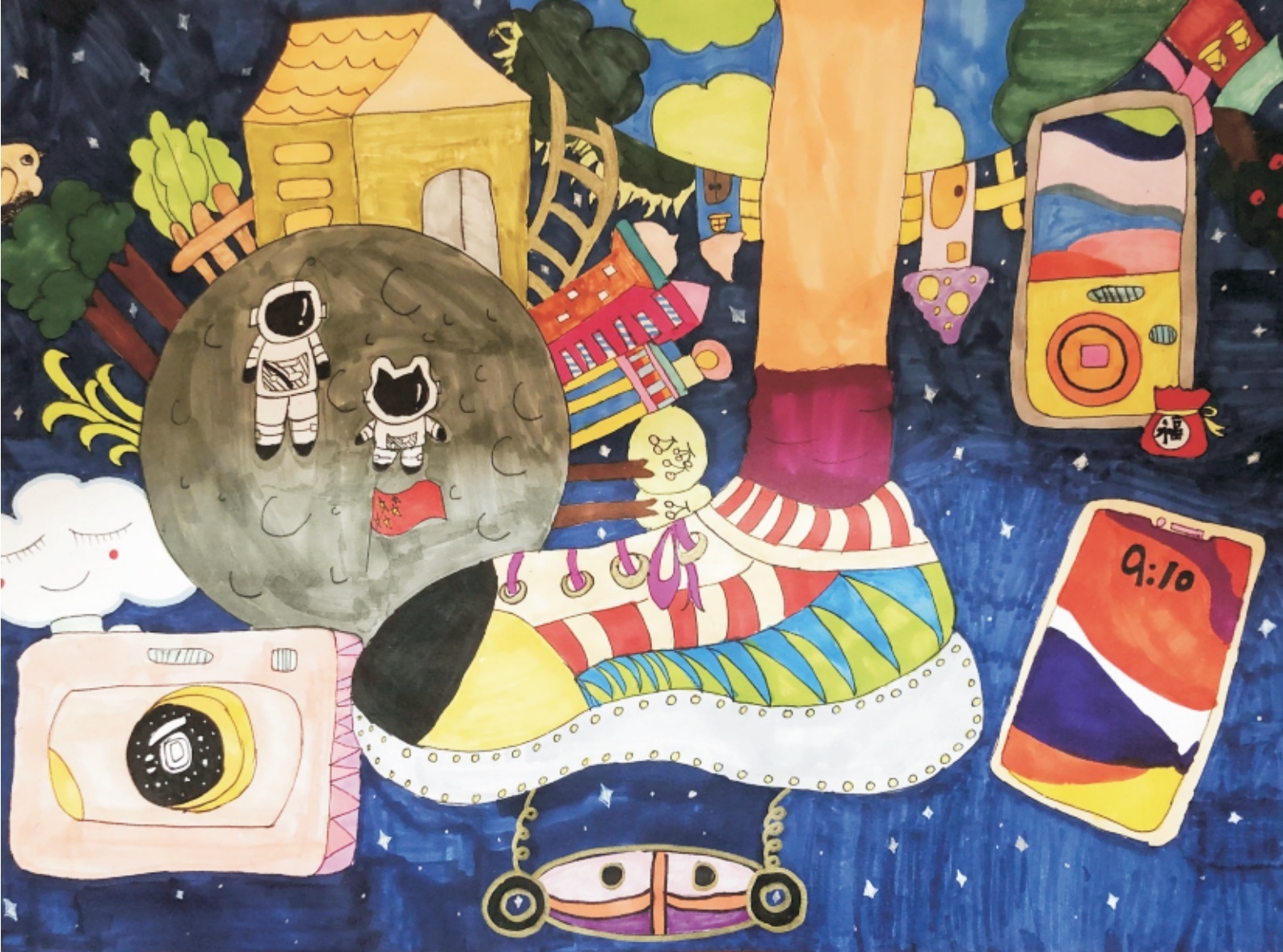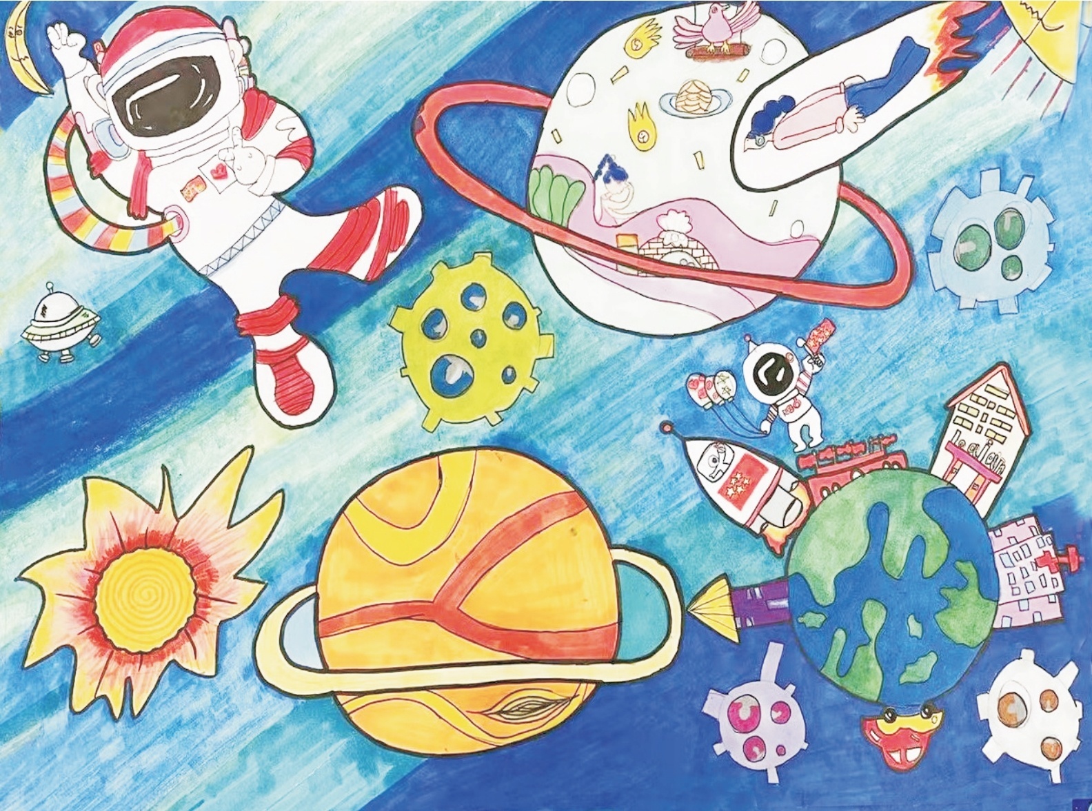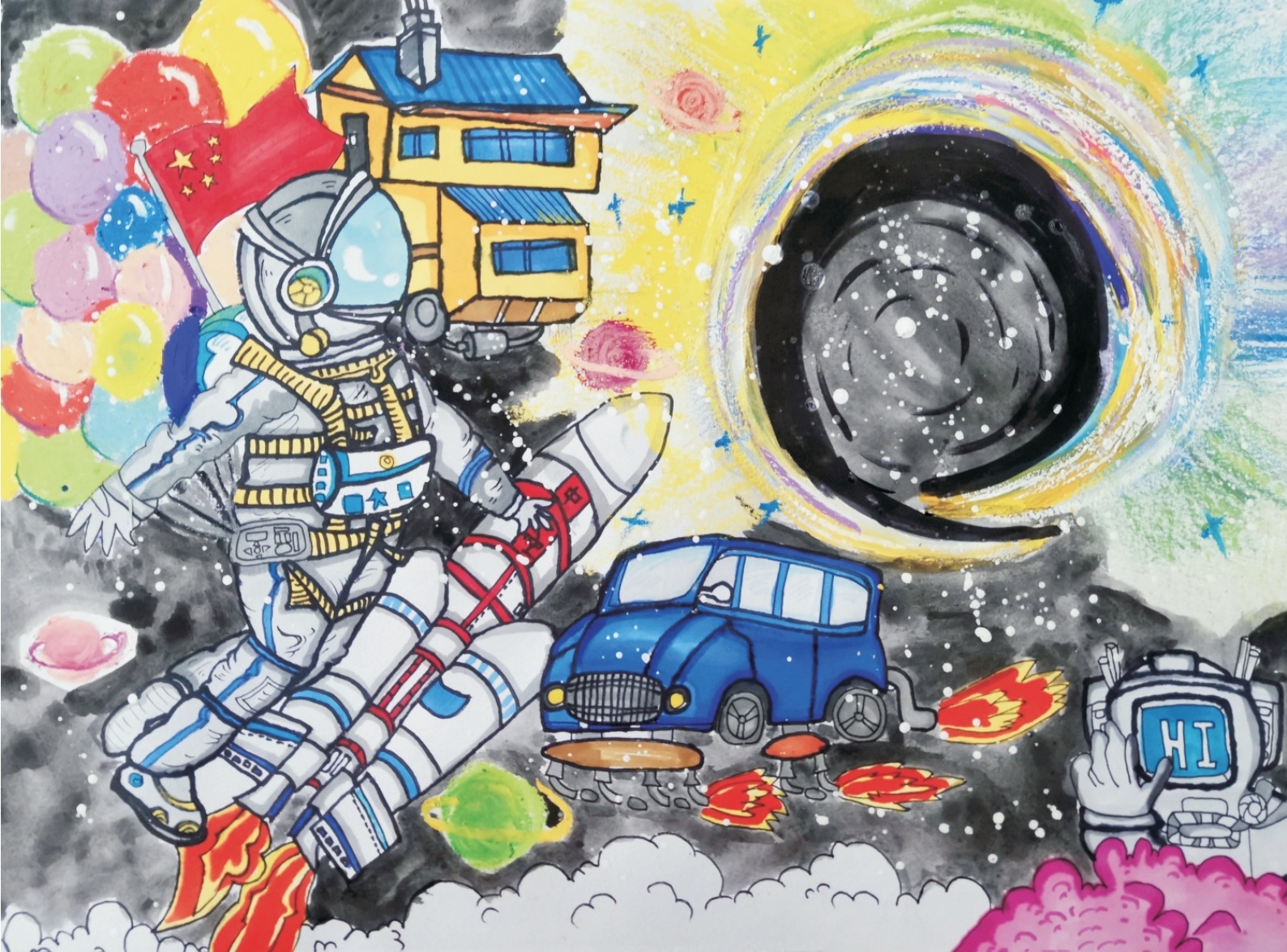图为《宇宙漫游 》中国人民大学附属中学实验小学李隐鳞作品。