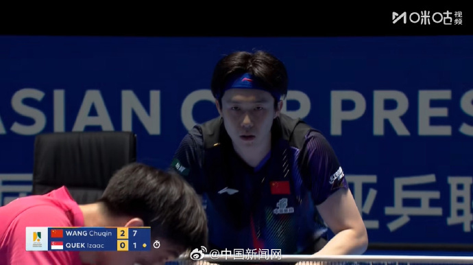 2月7日,海口亚洲杯男单1/8决赛,国乒选手王楚钦 以3:0战胜新加坡选手郭勇,顺利晋级8强。继续加油!