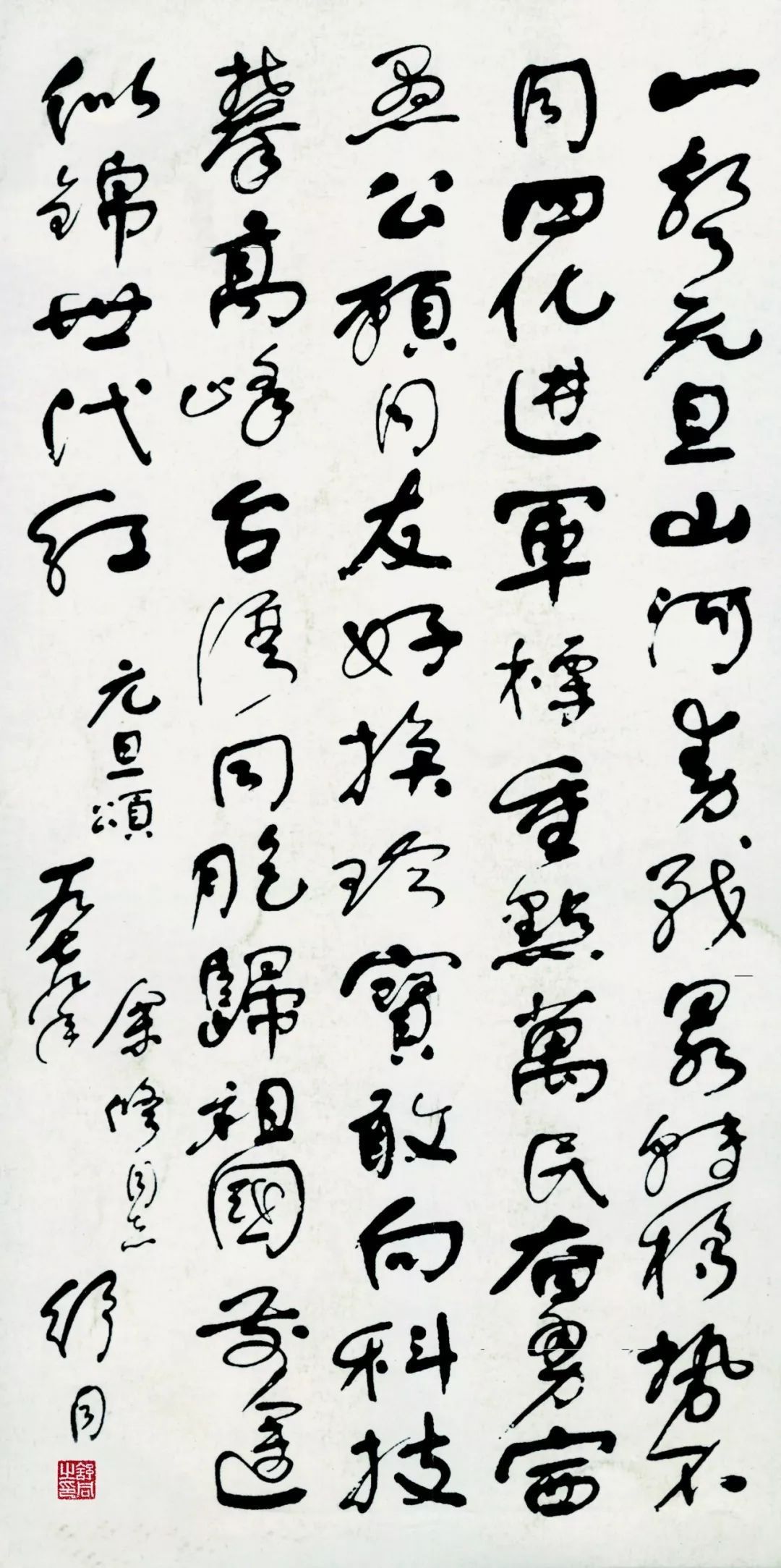 笔墨当随时代。书法也当有着时代的审美。父亲所处的时代,变革图强成为民族自救的最强音,文化改造与融合东西文化的重构成为志士仁人的共同心声。然而,这种革命又须继承传统中的精华,以一种雄沉厚重,外柔内刚的发力,才能一步步地奏效,最后达到大气磅礴的呈现。父亲亲自参加了这场跨世纪社会革命最激烈全过程,其书法服务于革命,又得到革命战争的洗礼磨砺;最终既与同志战友们一起实现了社会理想,也在这进程中造就了有着强烈时代感的书法,这是多么惊心动魄的宏伟与美丽啊!