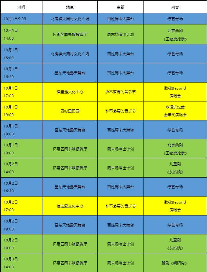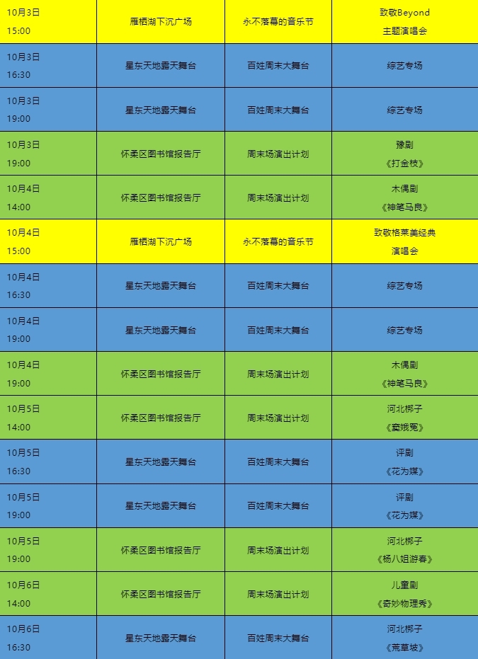 “永不落幕的音乐节”、“百姓周末大舞台”......10月1日至7日,怀柔将举办系列庆祝活动,与市民欢度国庆。