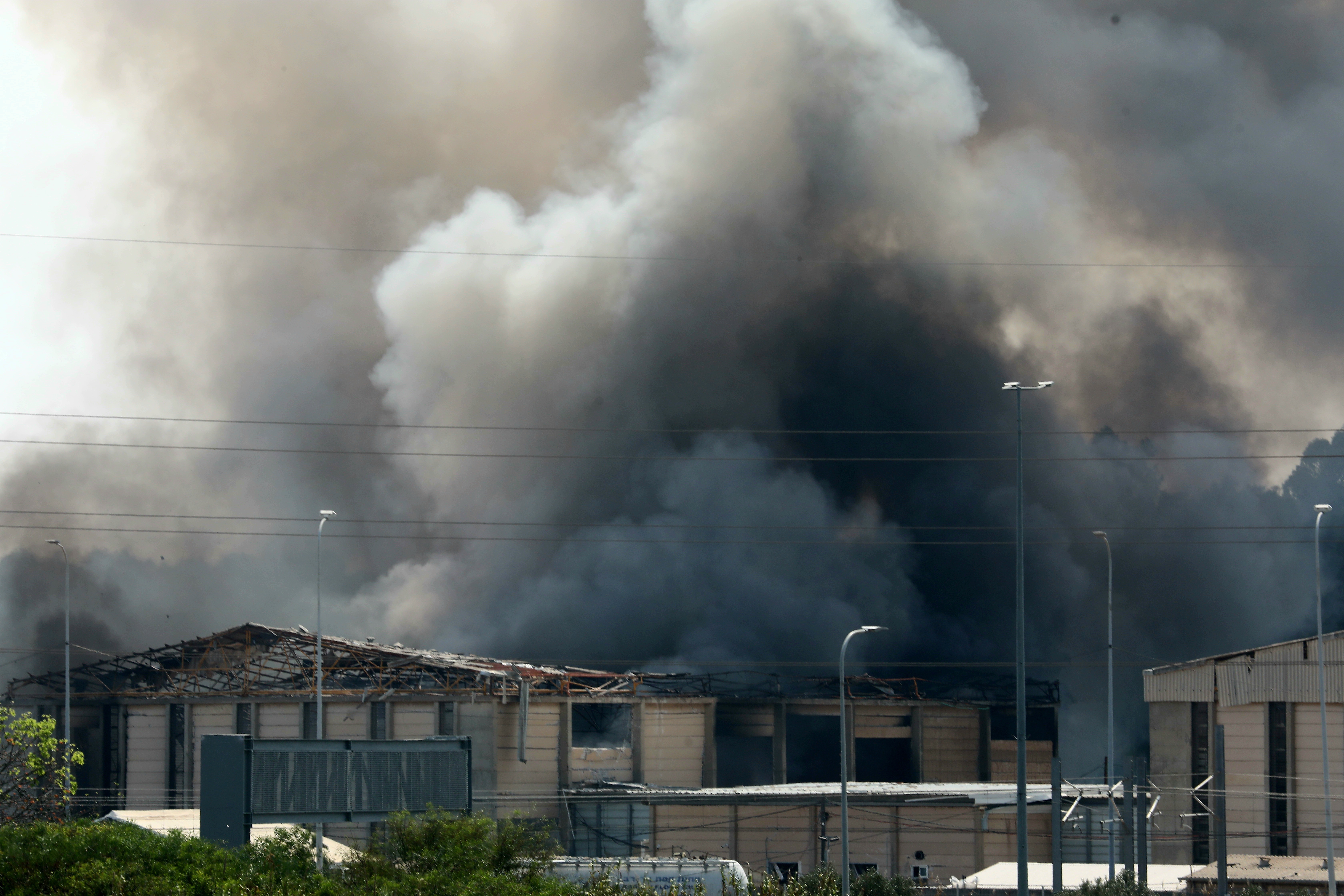 6月17日,在以色列中部城市海尔兹利亚,一栋建筑遭导弹袭击后升起浓烟