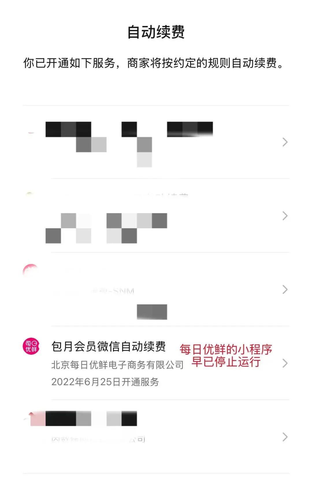 更让张女士气愤的是,她在微信、支付宝、苹果的订阅栏里,还发现了大量被忽视的未取消订阅,甚至有App、小程序已经下架,却依然在订阅名单上 “挂着”,“如果不是App关停,我是不是就要一直被扣费,当冤大头?太离谱了”。