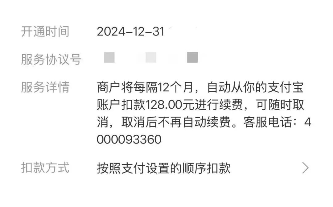 2026年初,市民张女士在核对支付宝账单时,一条某修图App的128元扣款记录让她陷入困惑。“我完全不记得买过这项服务,第一时间去苹果 App 的订阅里查询,根本没看到这条订阅。” 张女士回忆,后来在互联网平台看到网友分享的经验,才在支付宝订阅里找到问题根源——2024年她使用过该App的7天免费试用,试用后未取消便自动按年扣费,从2024年持续到2026年,张女士从未收到过任何提醒。