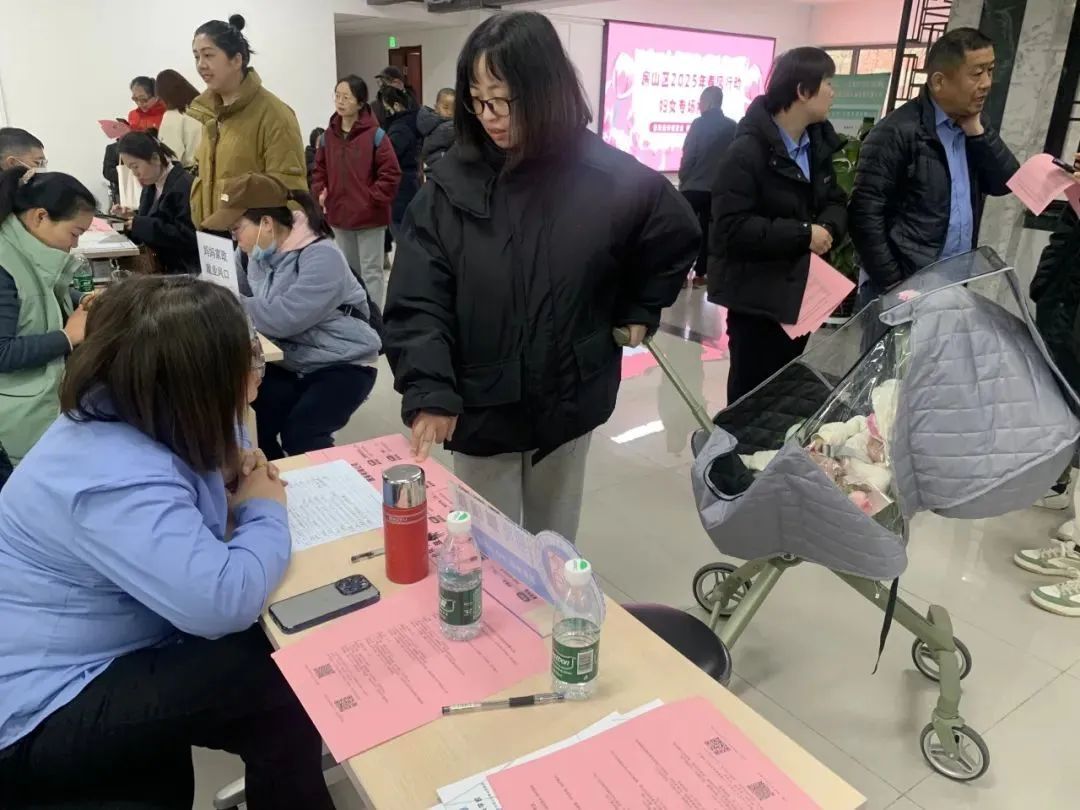 在区人力社保局二层就业服务大厅,2025年春风行动女性专场招聘会现场热闹非凡,助力女性实现人生价值,绽放巾帼风采。