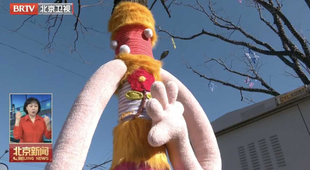 今年1月,北京广播电视台春节联欢晚会向全社会发起了“我给大树织毛衣”活动,北京16个社区立刻报名参加。居民们利用家中的旧毛衣,旧围脖,毛绒玩具,缝制成了创意十足的“树衣”。