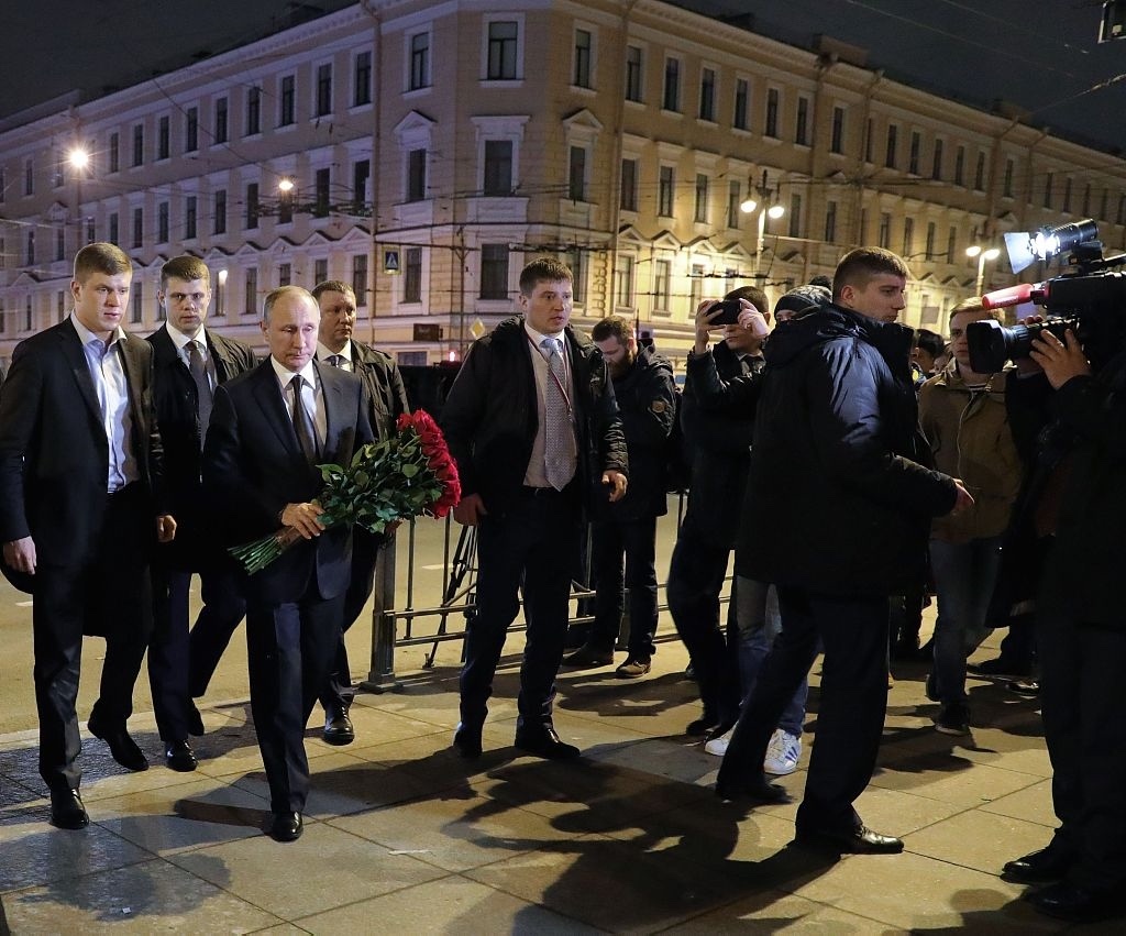 (北京时间记者 翟玉珍 编辑)当地时间2017年4月3日,正在家乡圣彼得堡访问的俄罗斯总统普京,连夜前往发生列车爆炸的技术学院站献花,悼念爆炸中的死难者。