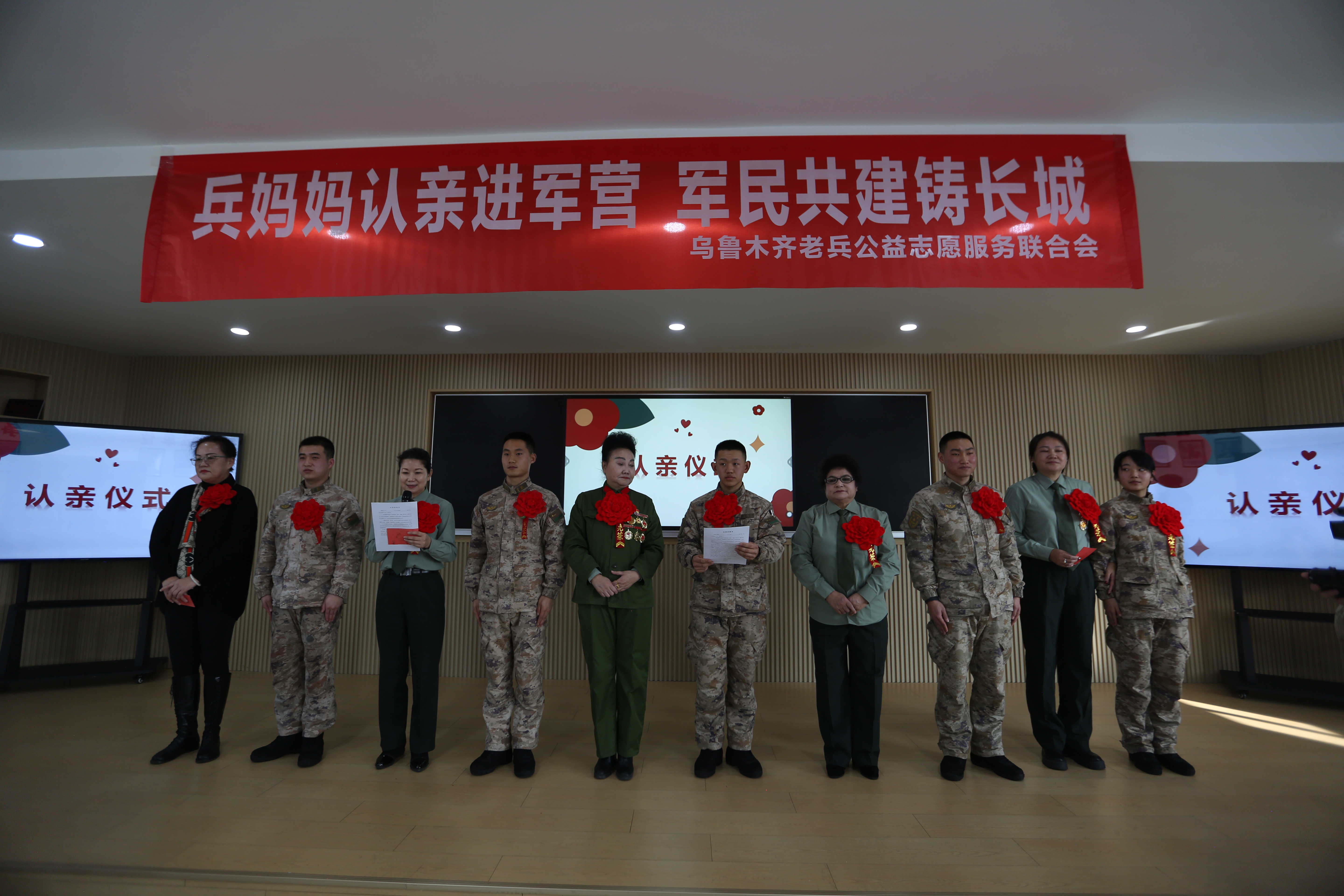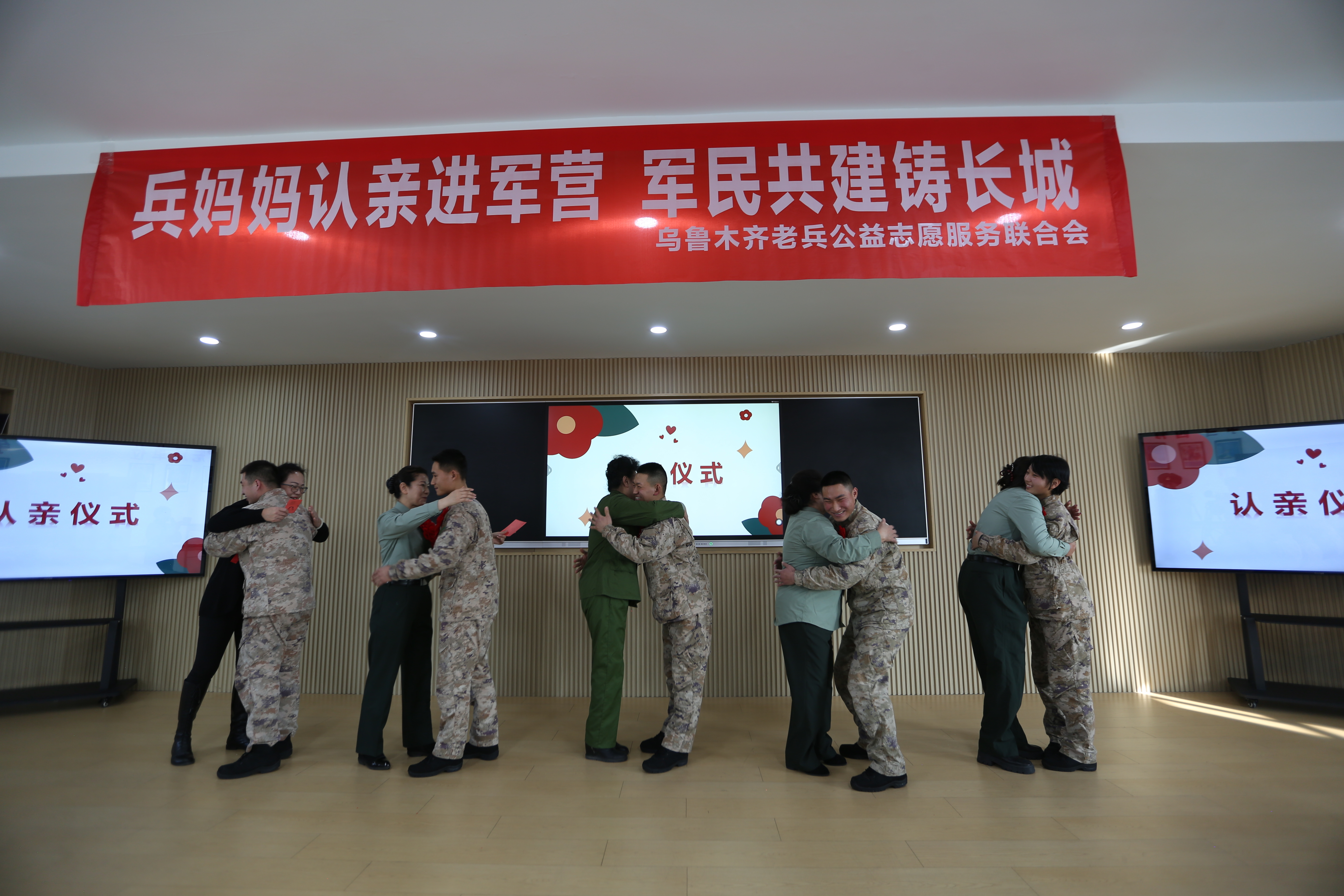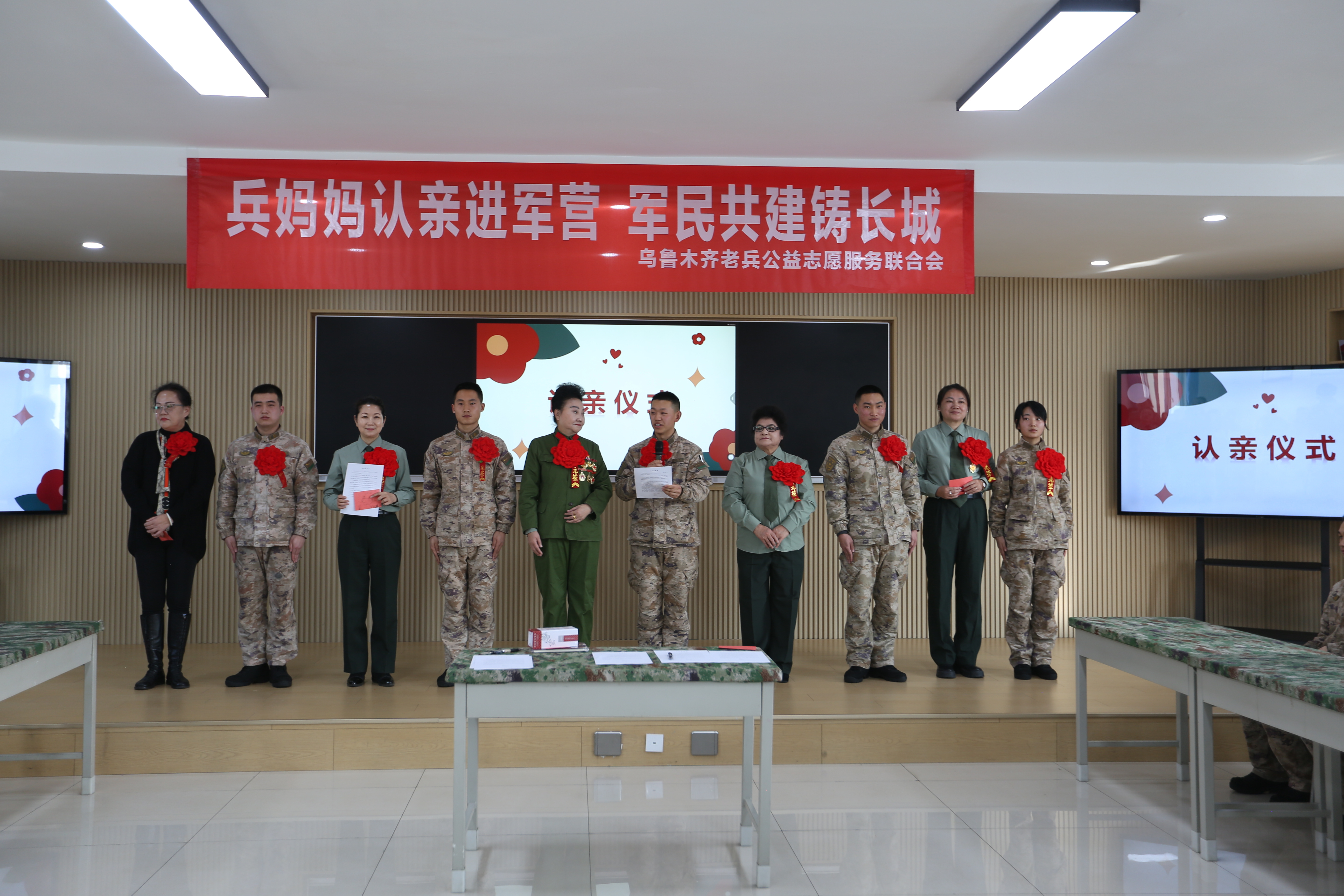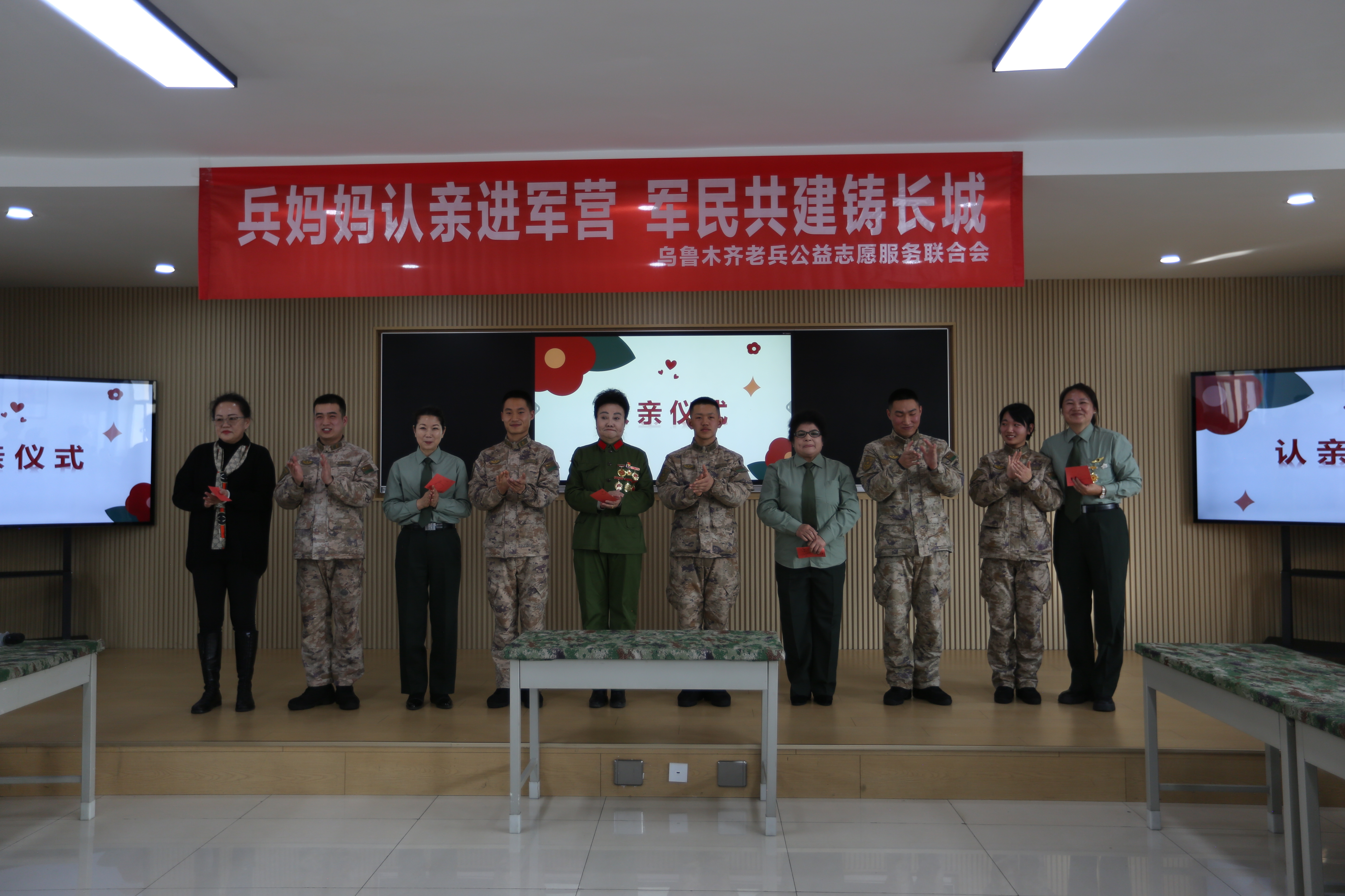 柴勇:我记得。那个是十年前,我刚刚走向公益之路的时候,就和很多老兵妈妈一块儿去的天山区的一个部队。当时那些战士们和兵妈妈拥抱呀、互相聊天呀、交流呀,我在旁边就感动得热泪盈眶。所以那个时候呢我就想着我早晚我也要当一个兵妈妈。经过一段时间的实践、考验、考试,通过政审,挺严的。最后呢,六年前我终于也当了一名兵妈妈。