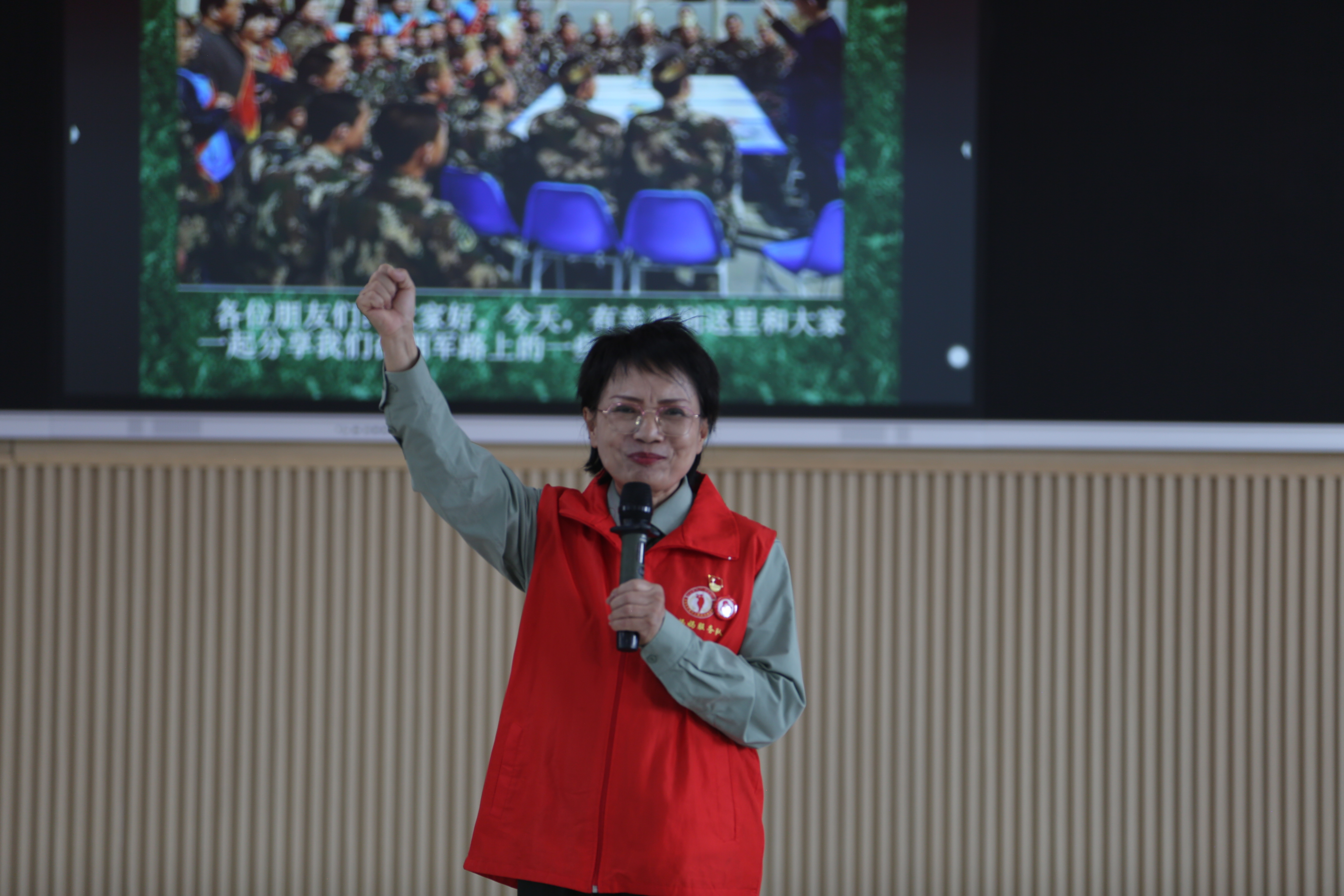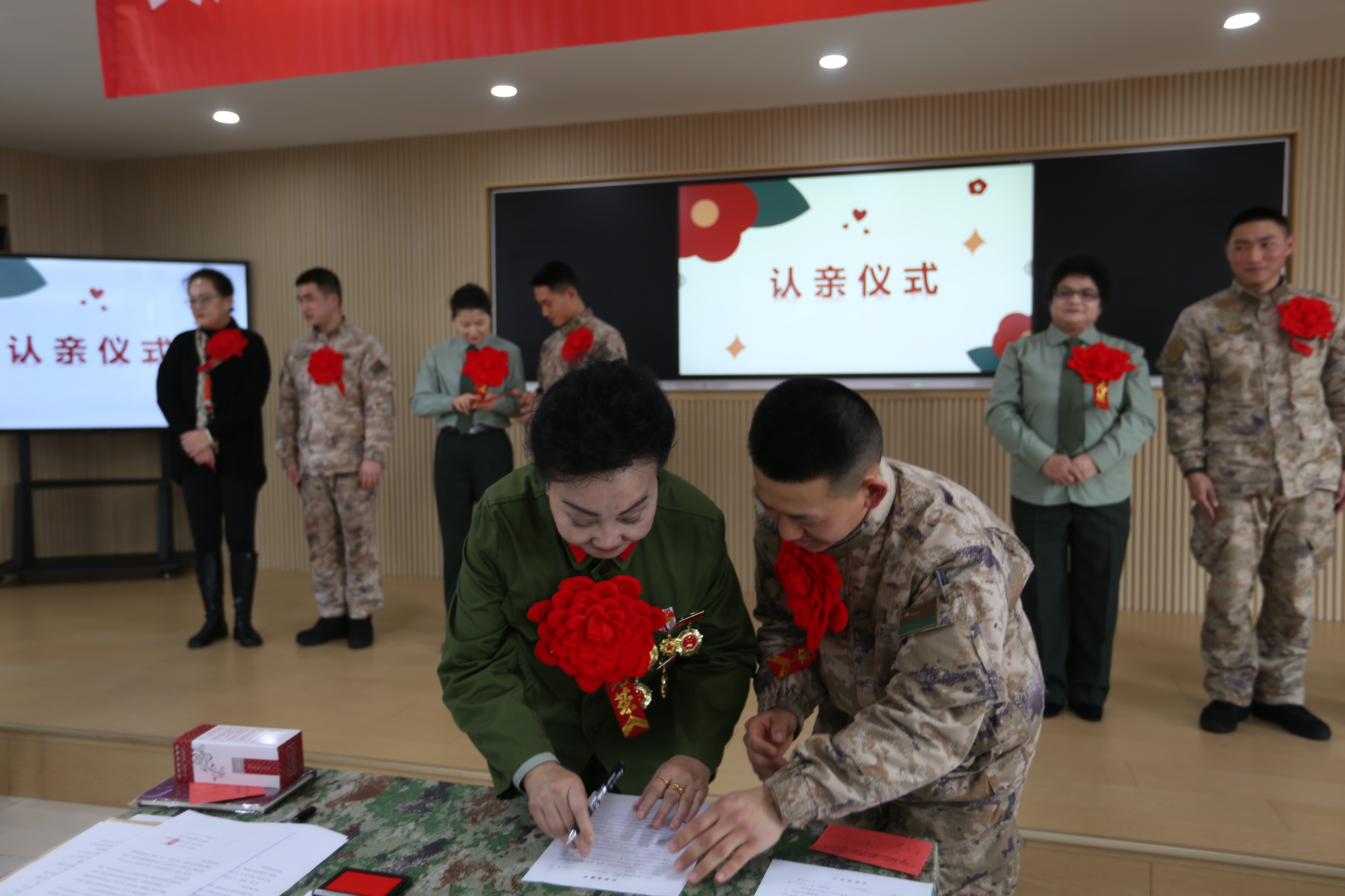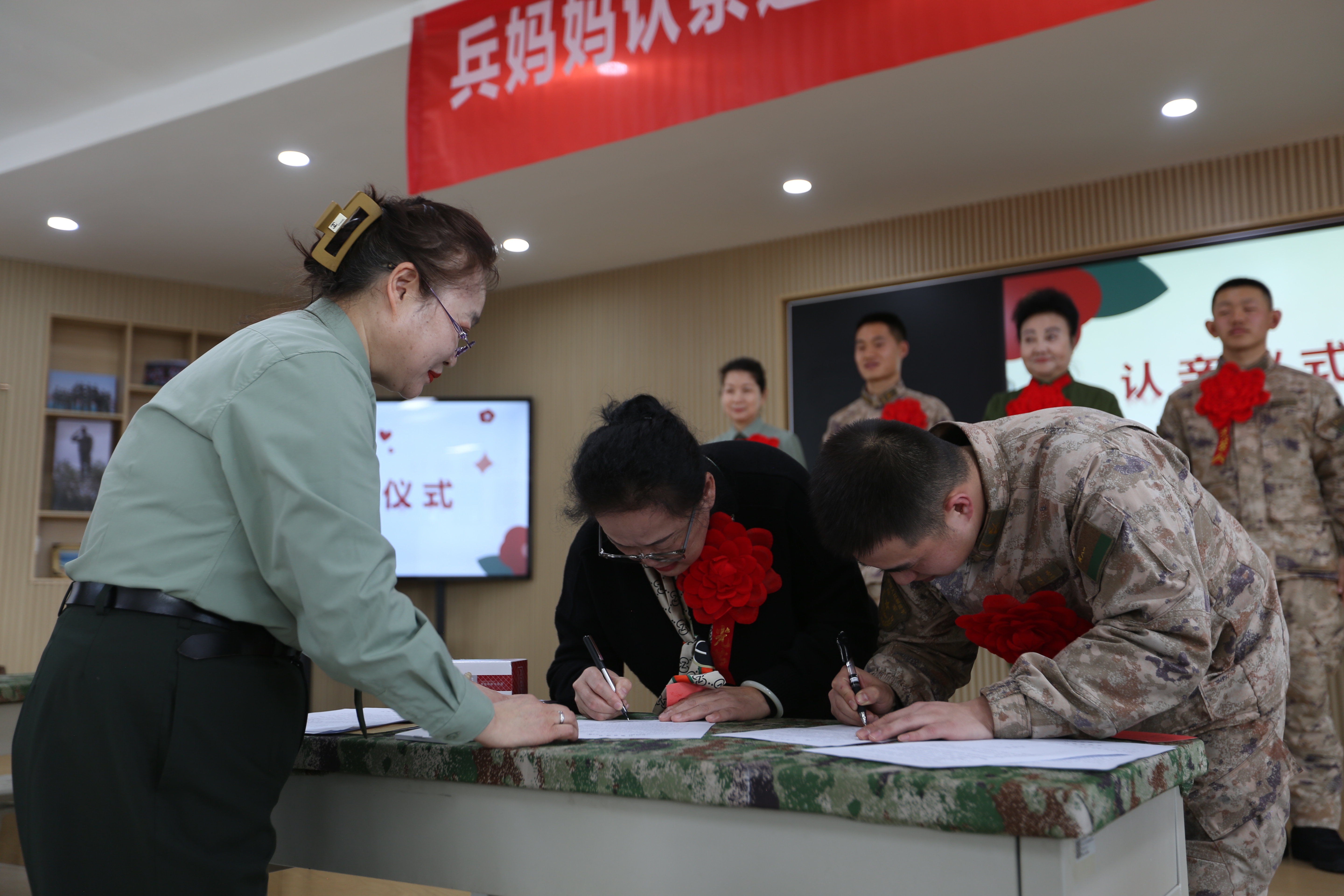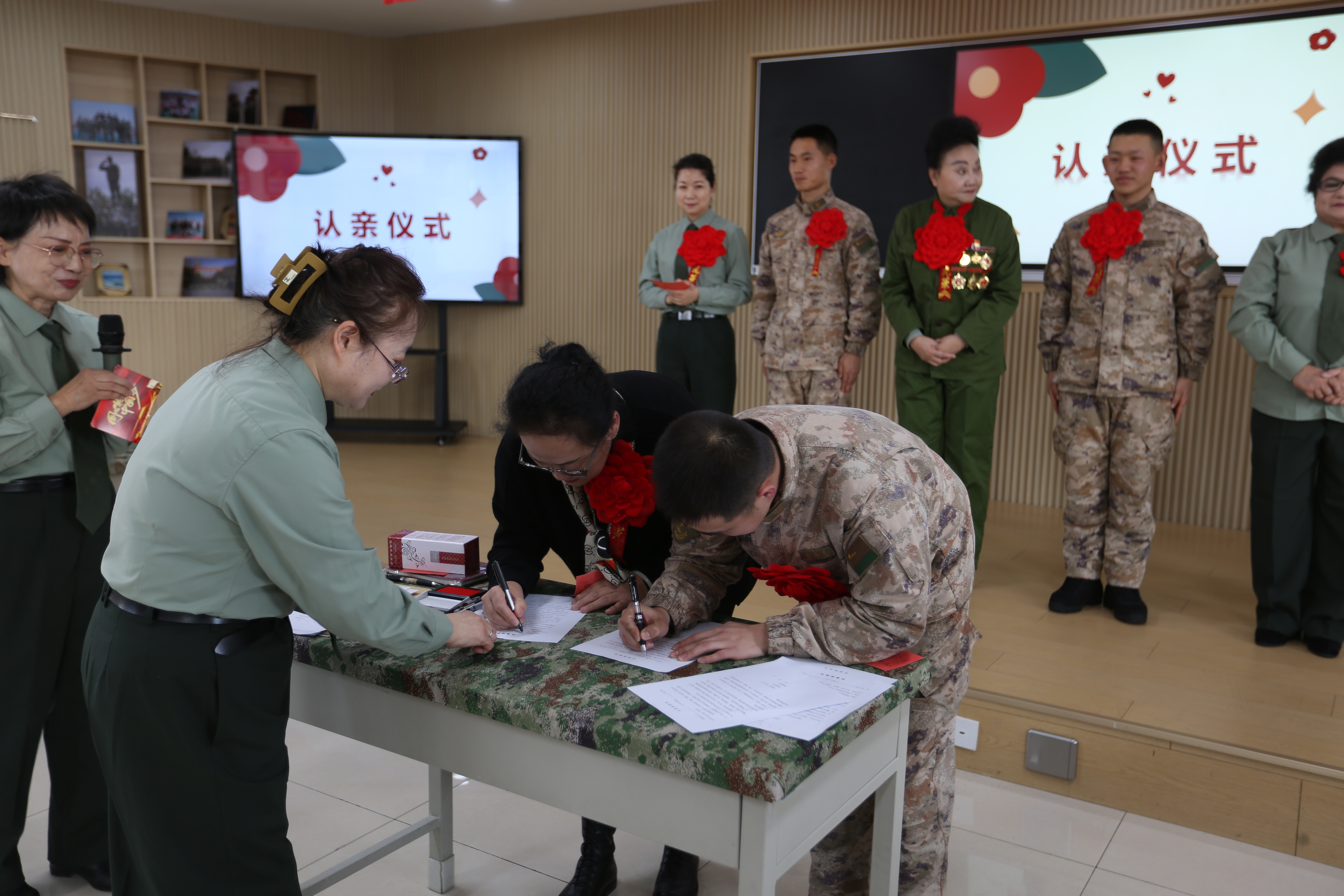 柴勇:我记得。那个是十年前,我刚刚走向公益之路的时候,就和很多老兵妈妈一块儿去的天山区的一个部队。当时那些战士们和兵妈妈拥抱呀、互相聊天呀、交流呀,我在旁边就感动得热泪盈眶。所以那个时候呢我就想着我早晚我也要当一个兵妈妈。经过一段时间的实践、考验、考试,通过政审,挺严的。最后呢,六年前我终于也当了一名兵妈妈。