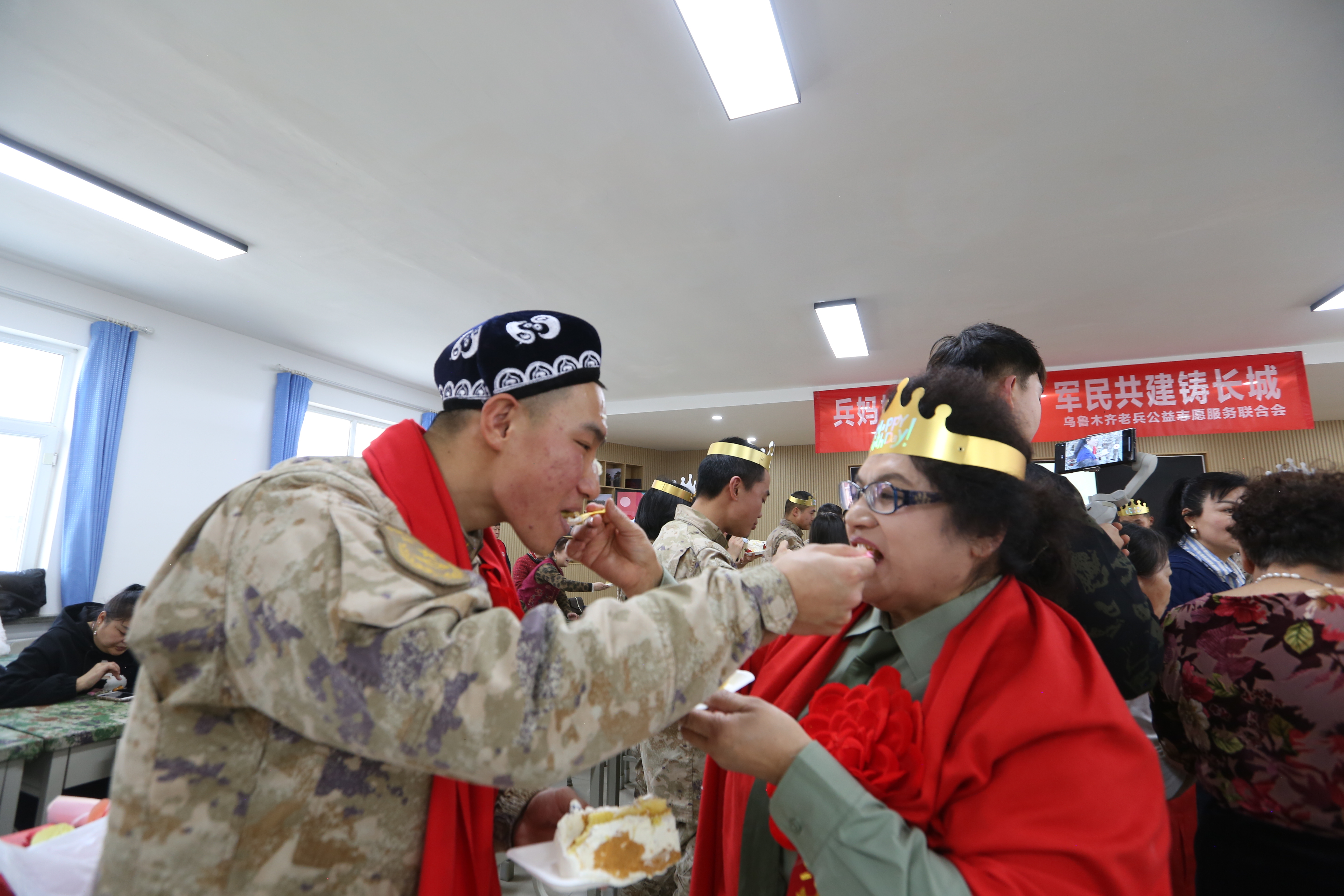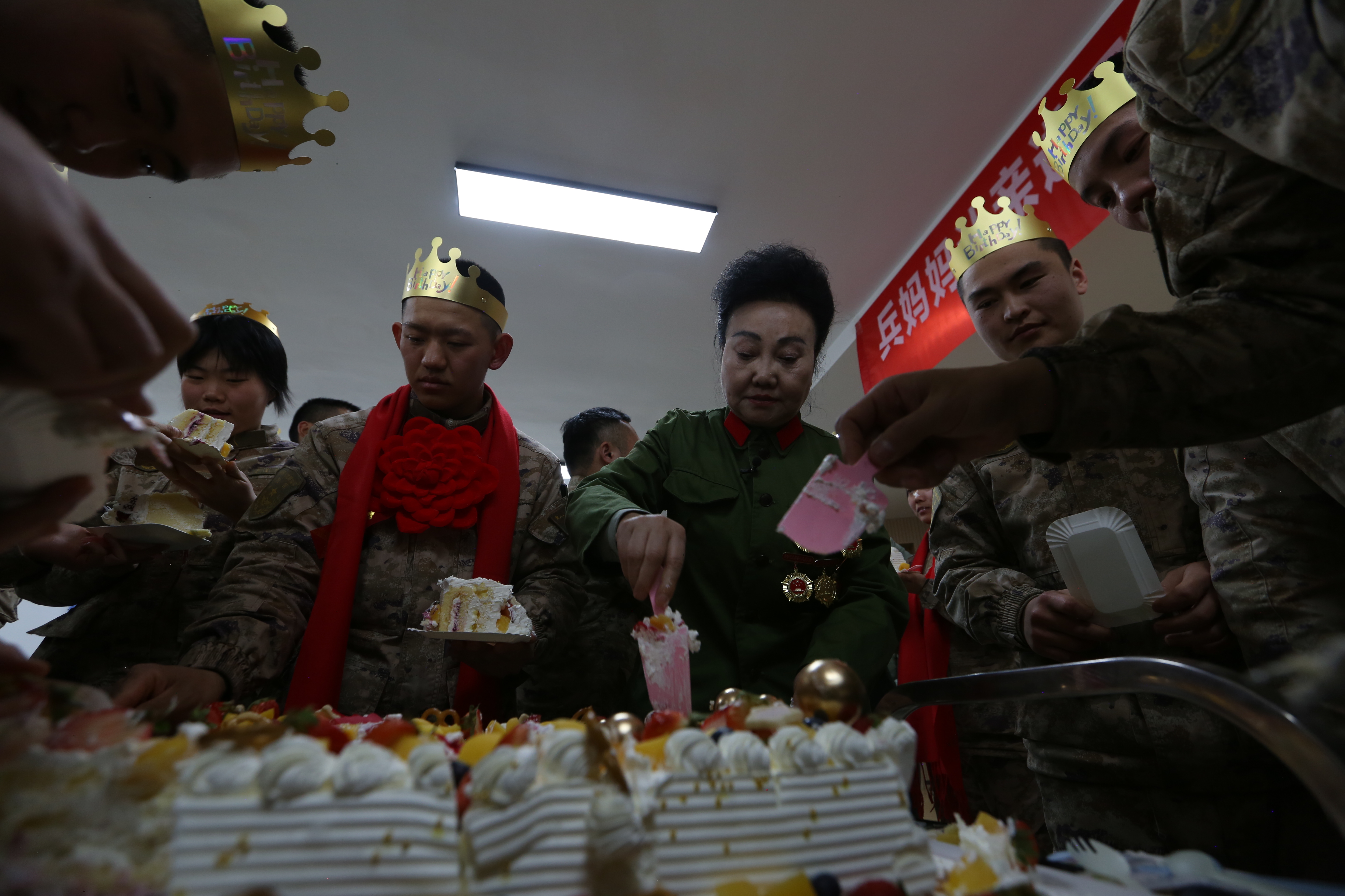 从军营中来,到军营中去。王志刚作为一名退役老兵,从事兵妈妈认亲活动已经有18个年头了,她一辈子没有结婚,独自收养的4名兵儿子都相继退伍。这次她带着提前准备好的,写着“最可爱的人”的生日蛋糕送给本月过生的兵儿子们,大家围坐在一起包饺子,共唱生日歌,分享着甜蜜的蛋糕,传递着真挚的祝福。