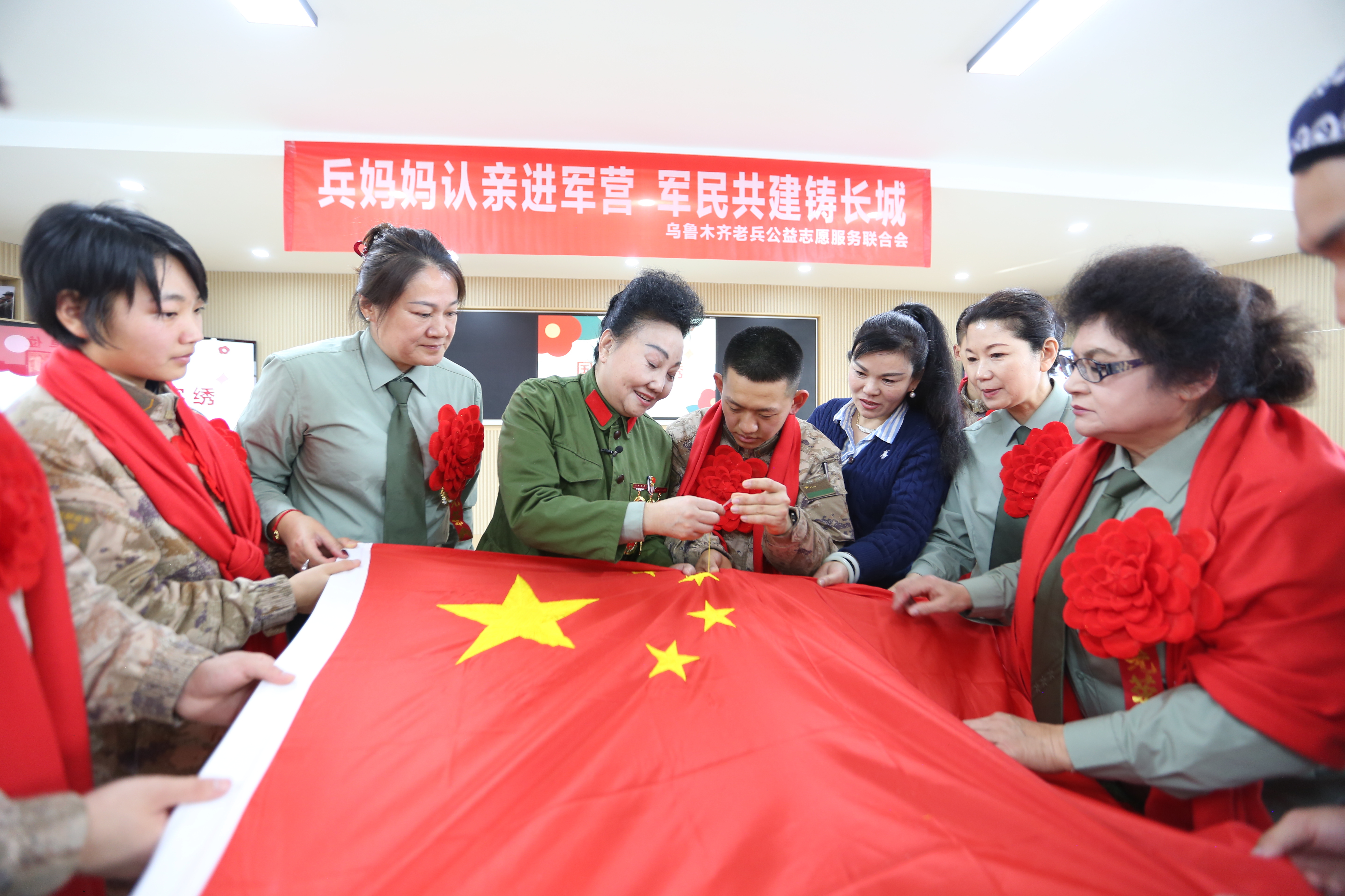 在新疆有这样一群人,他们与驻地官兵不是亲人,胜似亲人。他们的无私奉献和关爱,让远离家乡的边防官兵感受到了家的温暖和母爱的力量,而官兵们也亲切地称呼他们为“兵妈妈”。日前,“兵妈妈”志愿者团队来到新疆军区某旅,看望结对认亲的兵儿子们,用自己的行动诠释了军民鱼水情深,成为了新时代军民一家亲的一道靓丽的风景线。