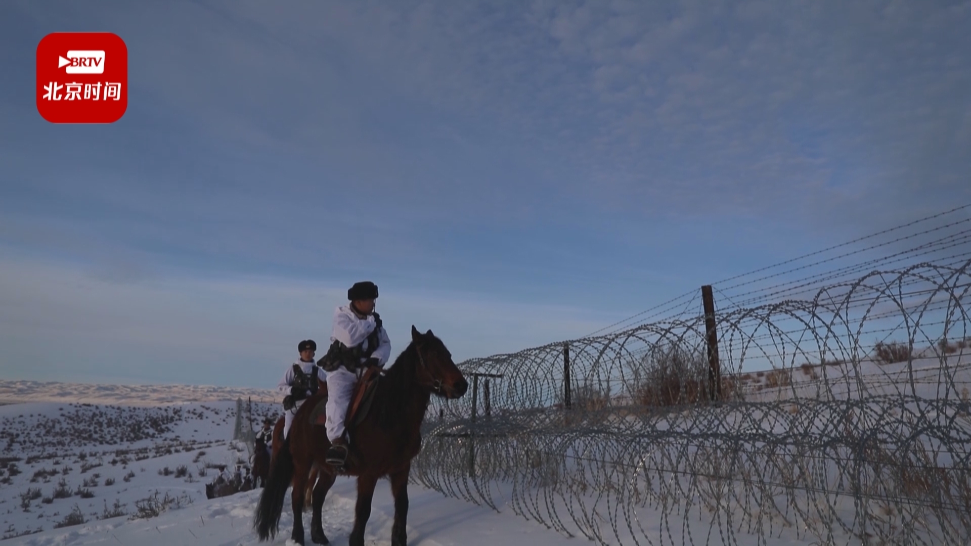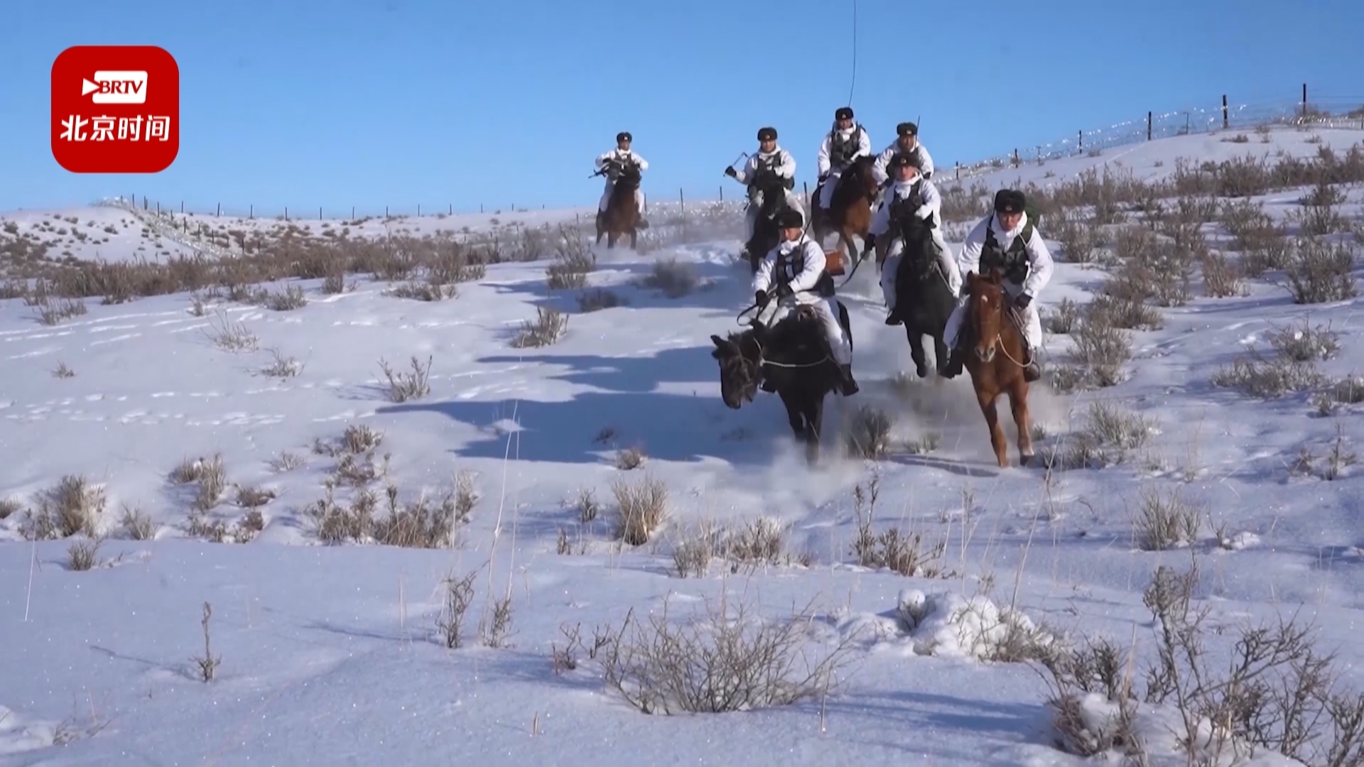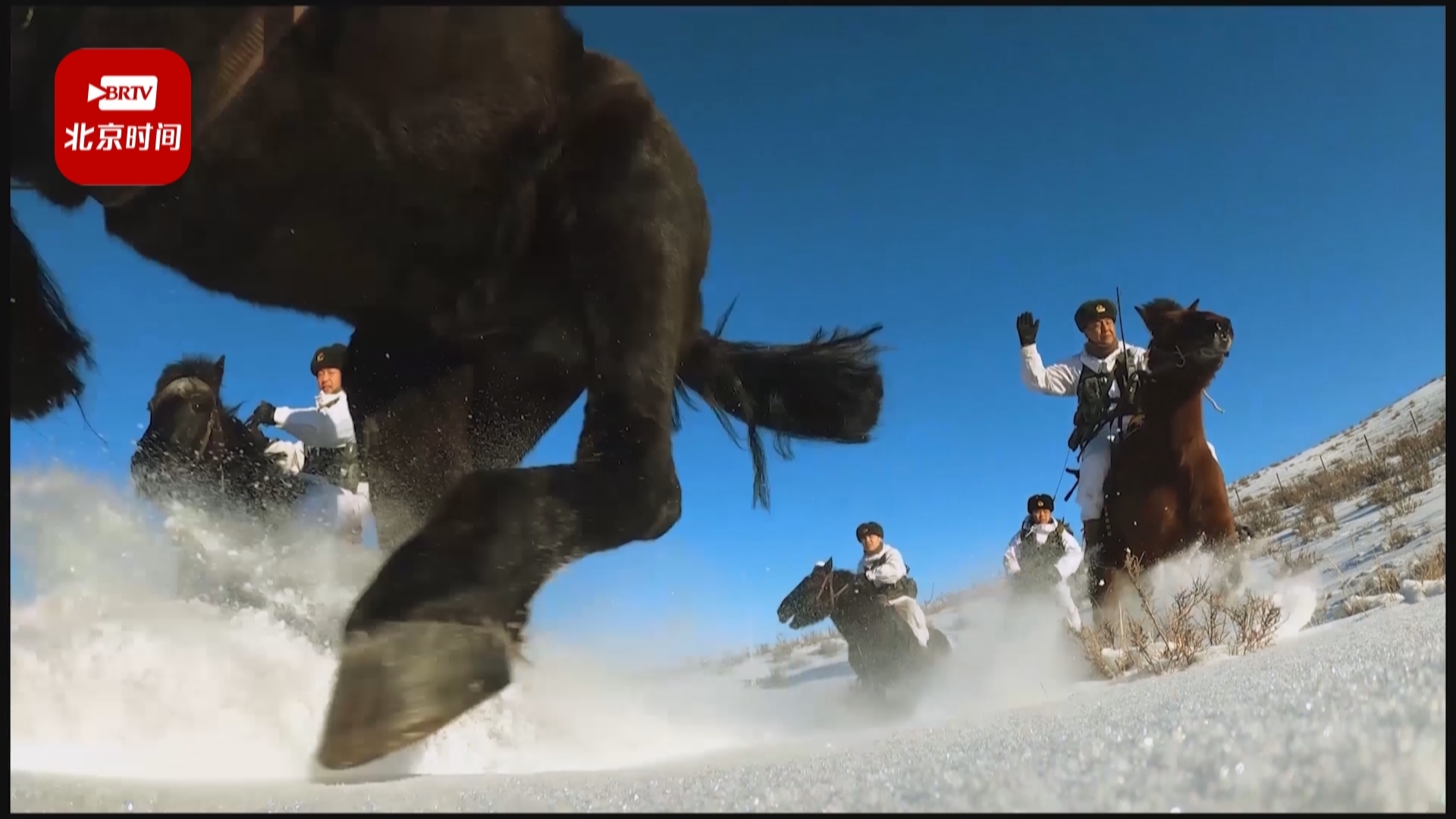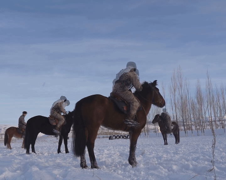 冰封雪裹,茫茫雪原。为了检验训练效果,一队由新老骑手组成的执勤分队乘马踏上了边防线。经过了1个多小时的长途跋涉,人员和军马体力都有所下降。此时,突然接到连队通报。