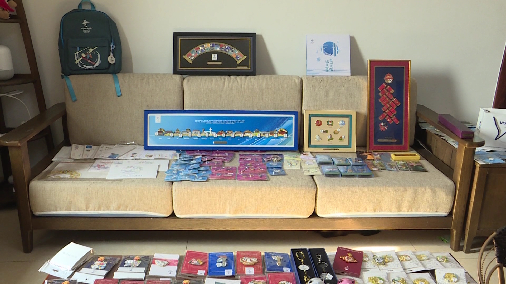 柯懿玲的家中,北京故事、冬奥场馆、四大发明、文房四宝等系列冬奥主题徽章应有尽有,构成一座“微型博物馆”,不仅如此,她还通过交流赠送冬奥徽章的方式,身体力行传播奥林匹克精神,她的近千枚徽章中有半数已经送给身边的亲人、朋友,不遗余力地为北京2022年冬奥会助力。