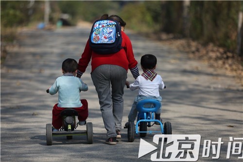 奶奶和湘湘接泽泽放学回家。图/卢美君