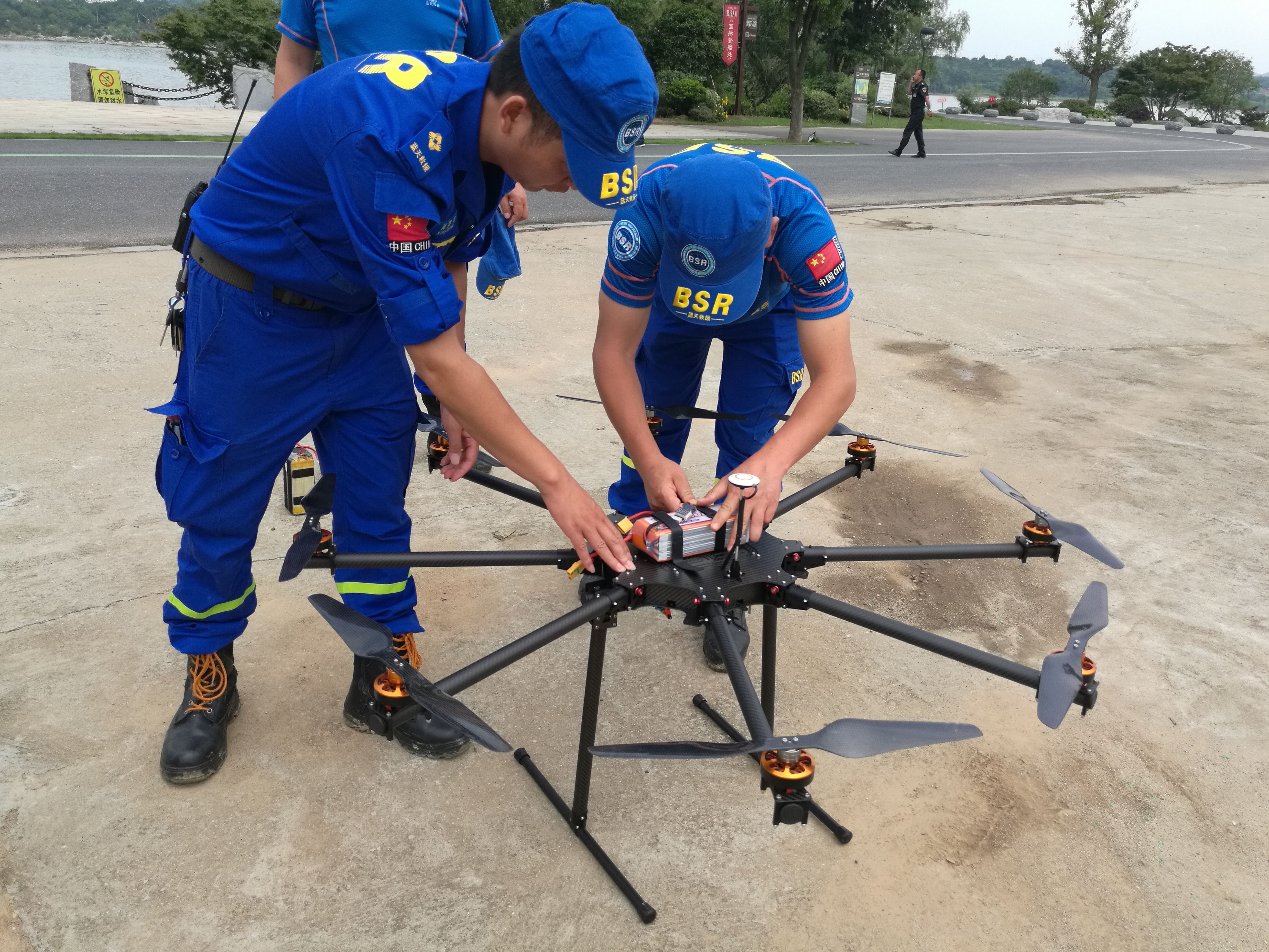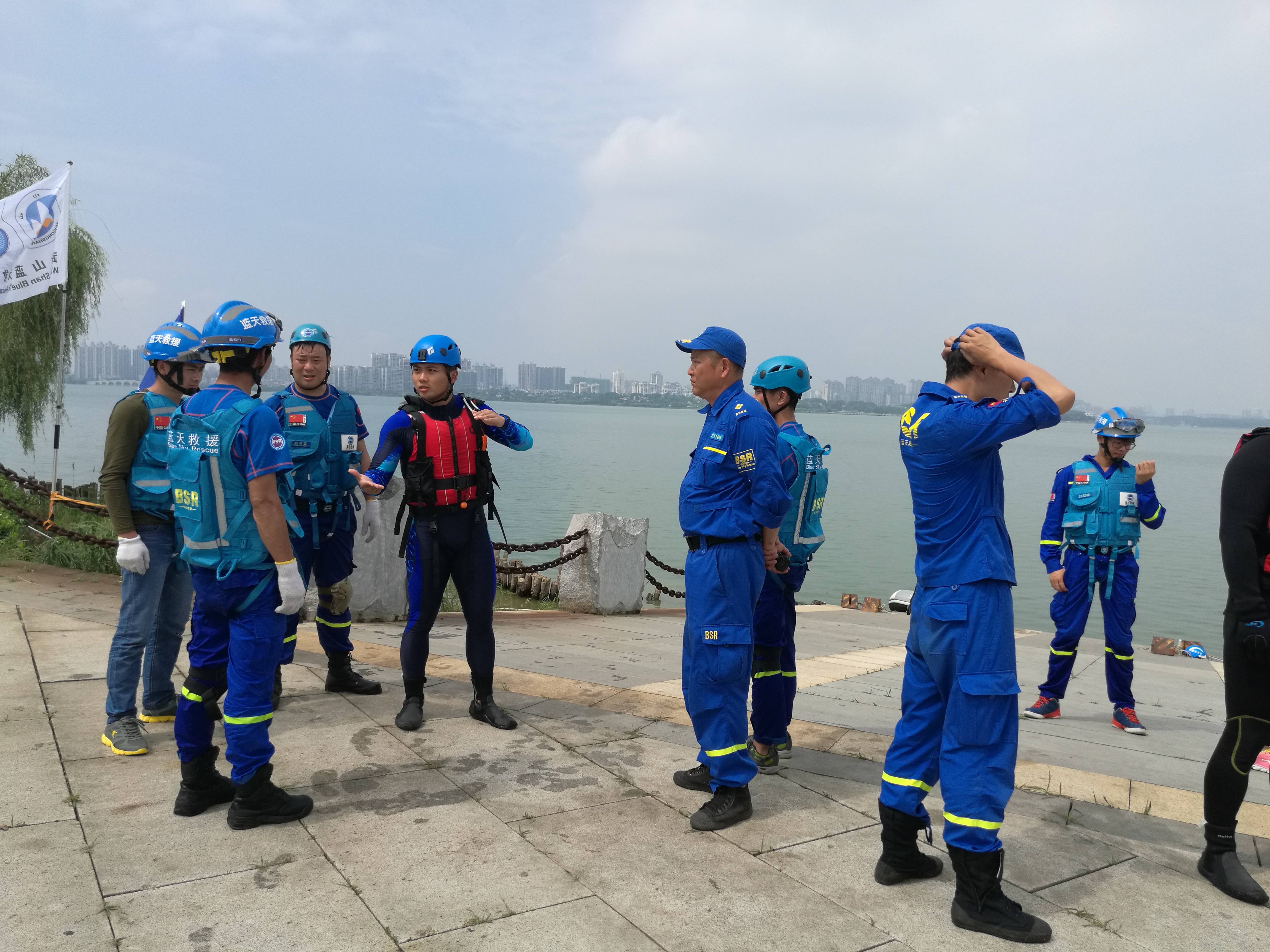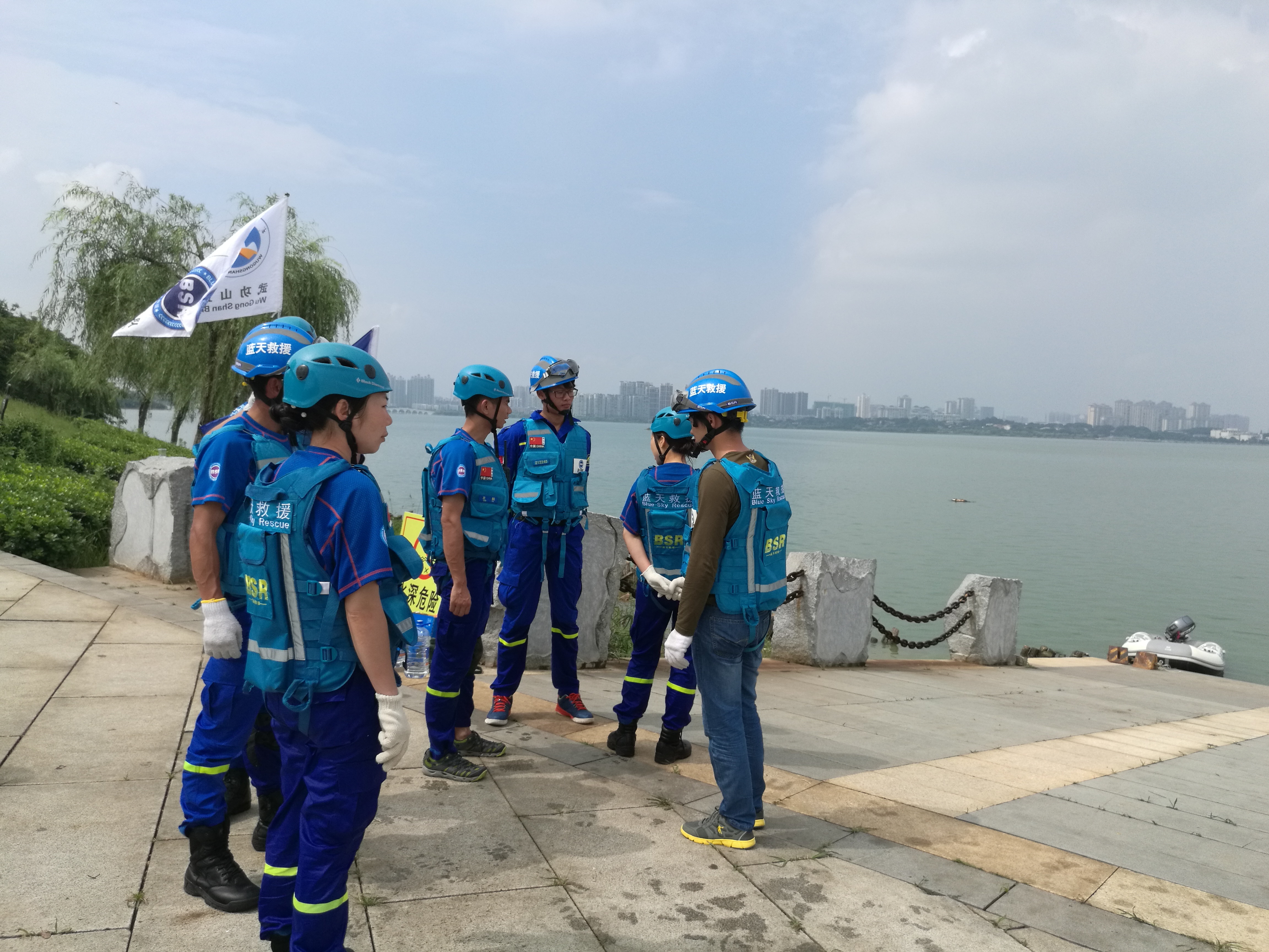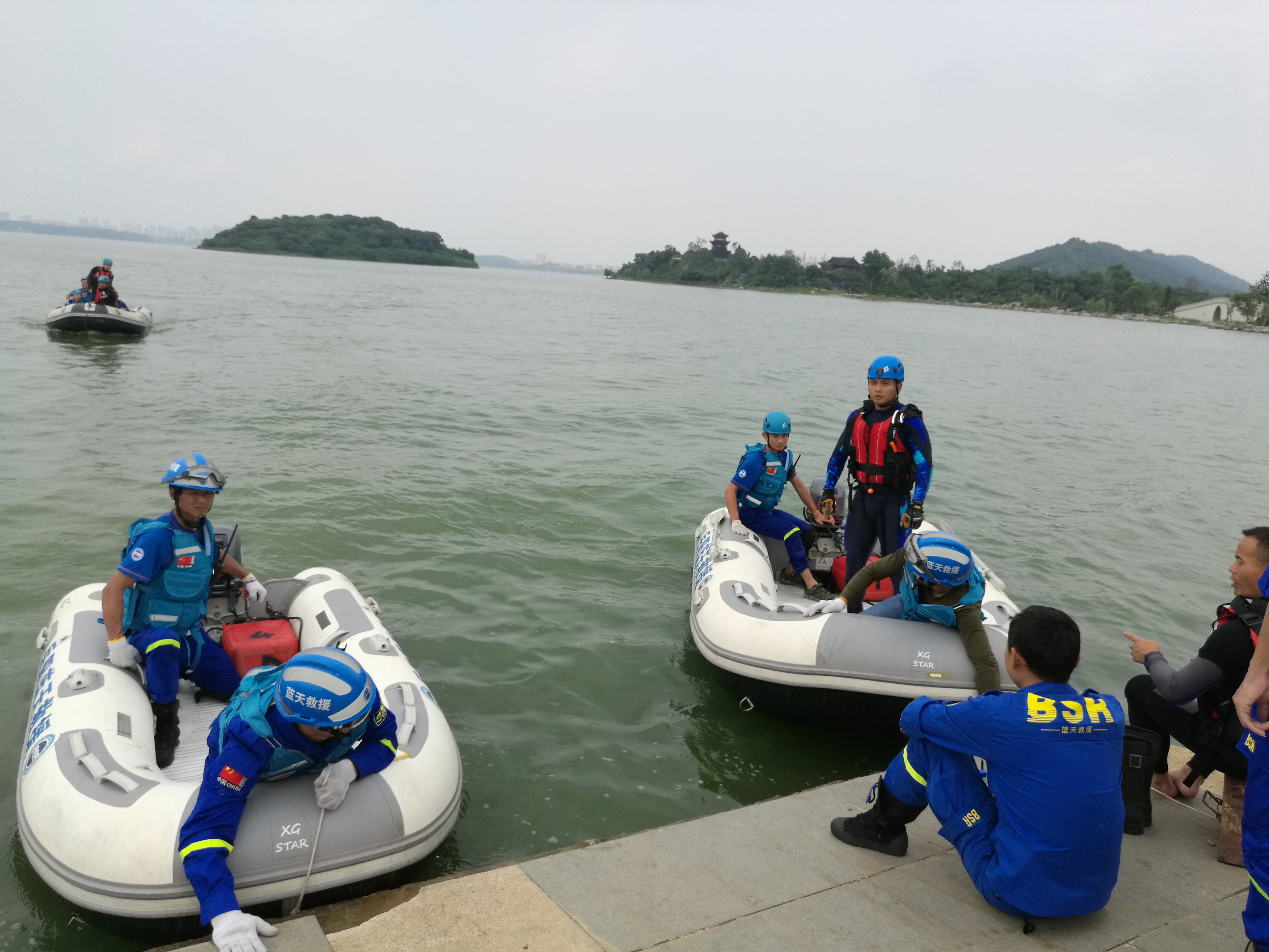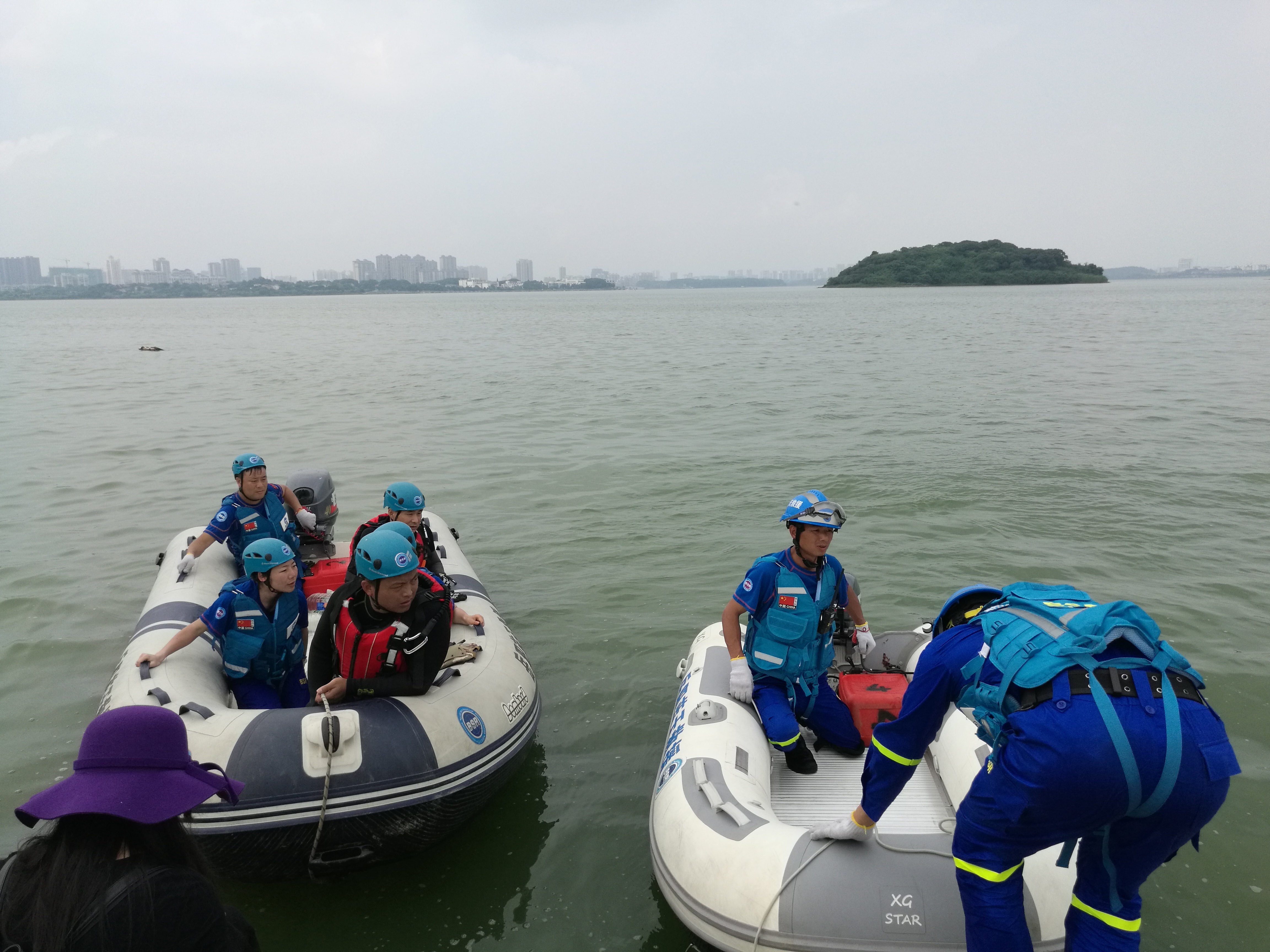 岳阳市蓝天救援队教官们在南湖水上训练基地