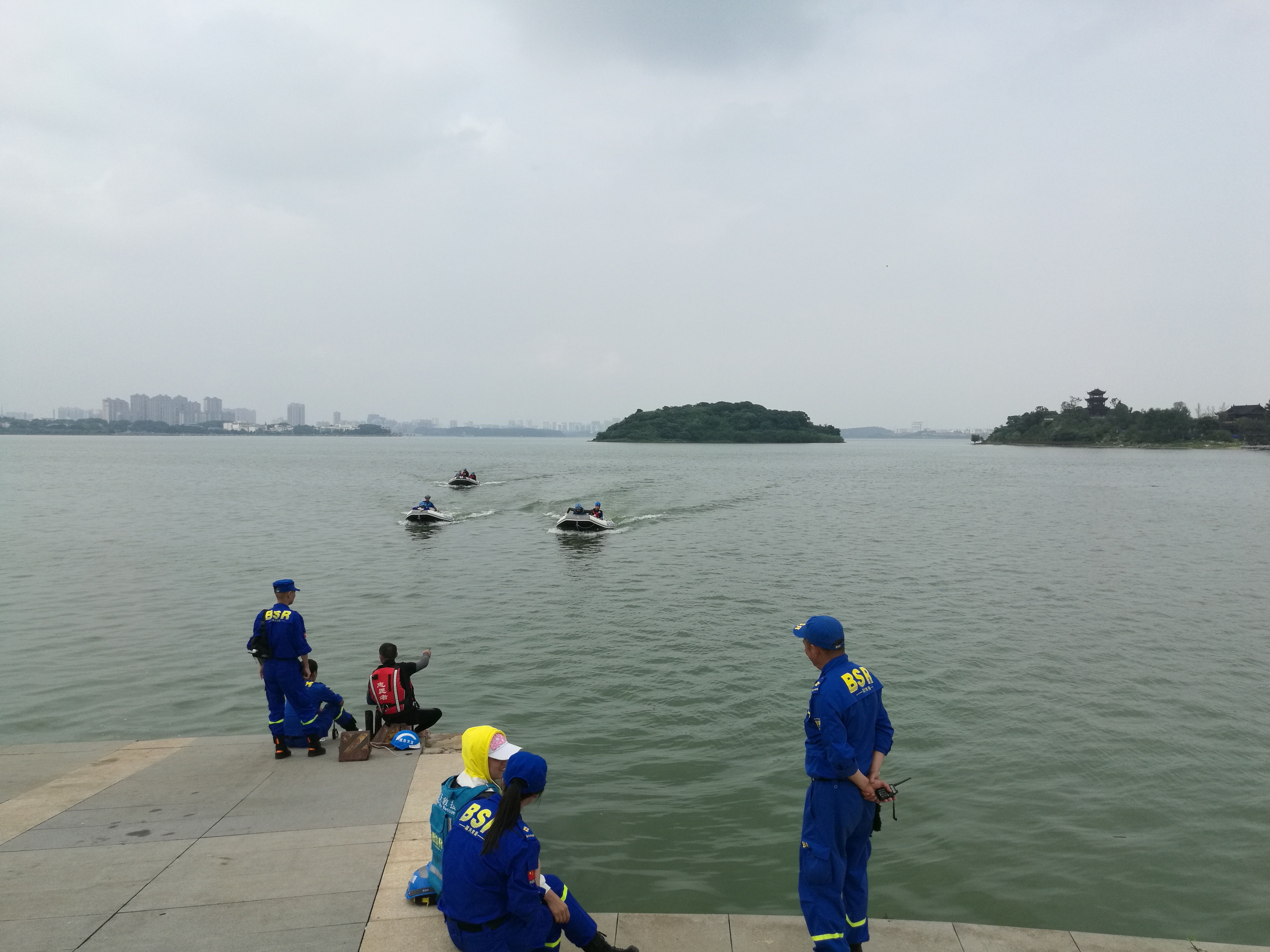 岳阳市蓝天救援队队友们在南湖水上训练基地
