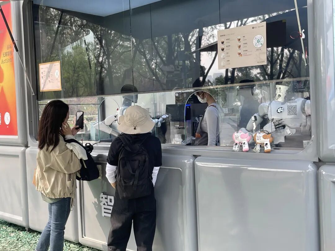 春日的北海公园,碧波荡漾、游船往来,尽显皇家园林的悠然古韵。东岸游船码头旁的零食售卖窗口,一台科技感十足的Xbot咖啡机器人,与周边古雅建筑形成奇妙反差,牢牢抓住了游客的目光。“爸爸,我要看机器人做咖啡!”一家六口路过时,两位小朋友被机械臂吸引,趴在窗口不愿离开。