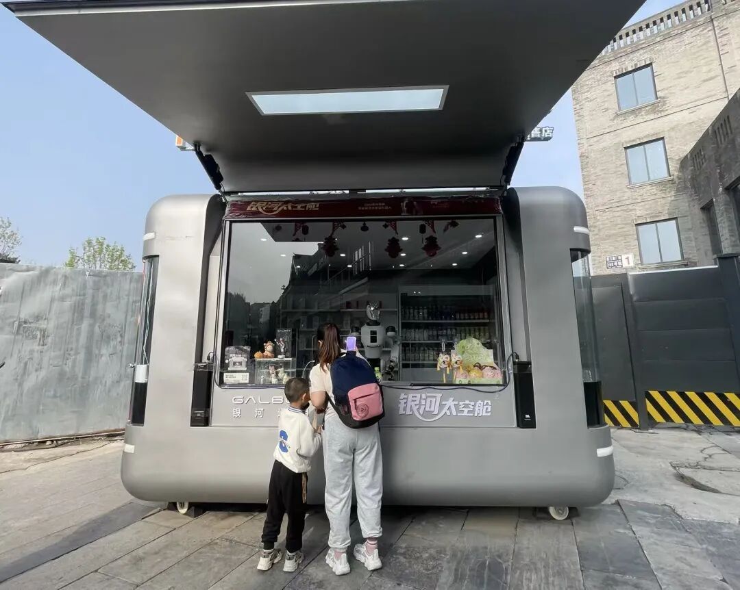 记者注意到,太空舱内也有人工值守,时刻留意着机器人的运行状态,处理突发情况。由于景区人流量大,饮品消耗快,工作人员还要兼顾往货架上补货。