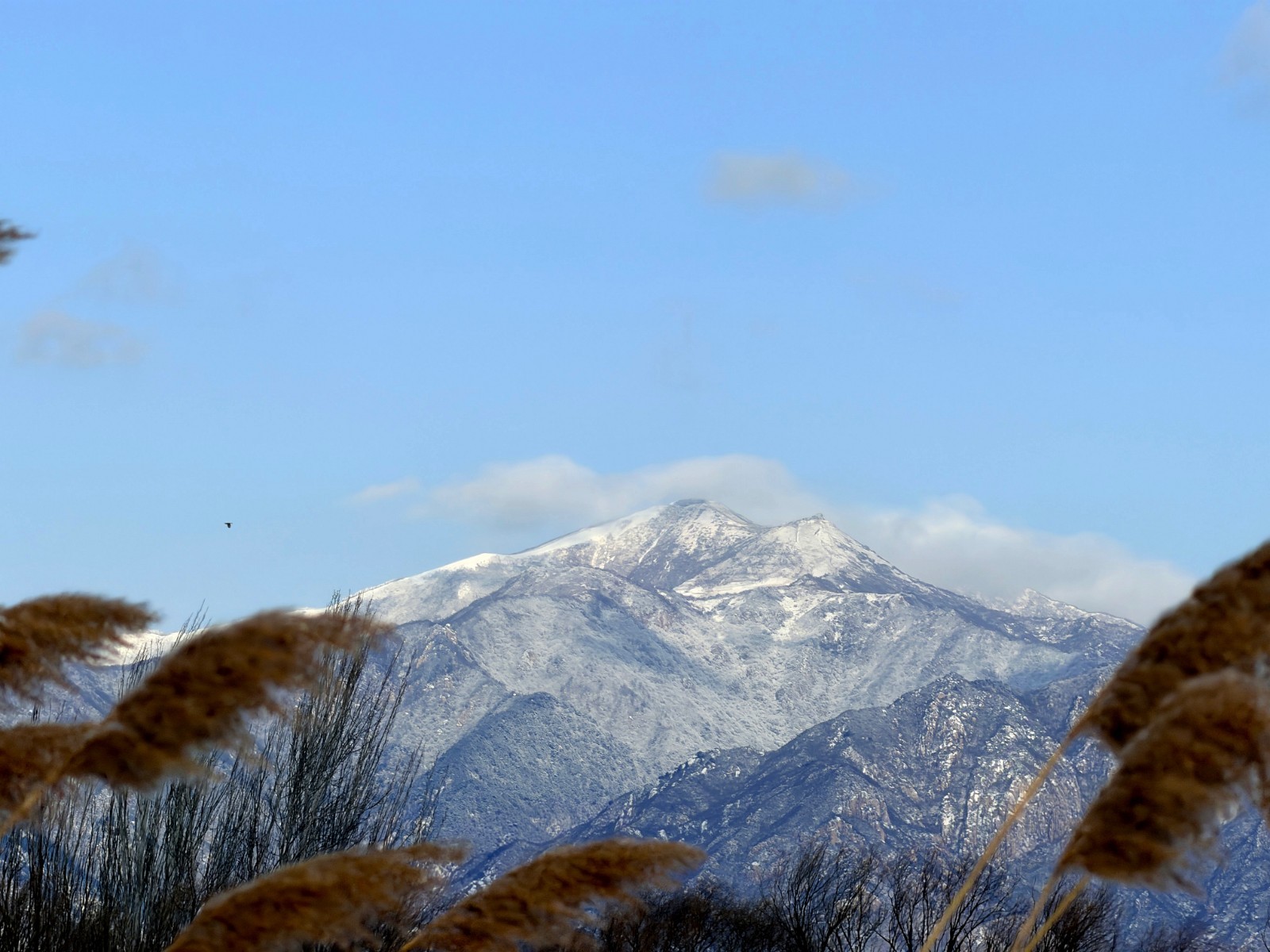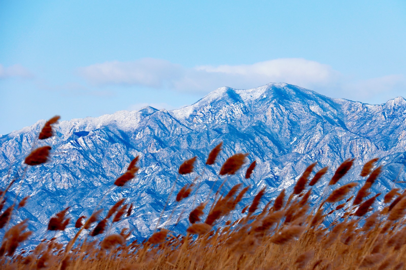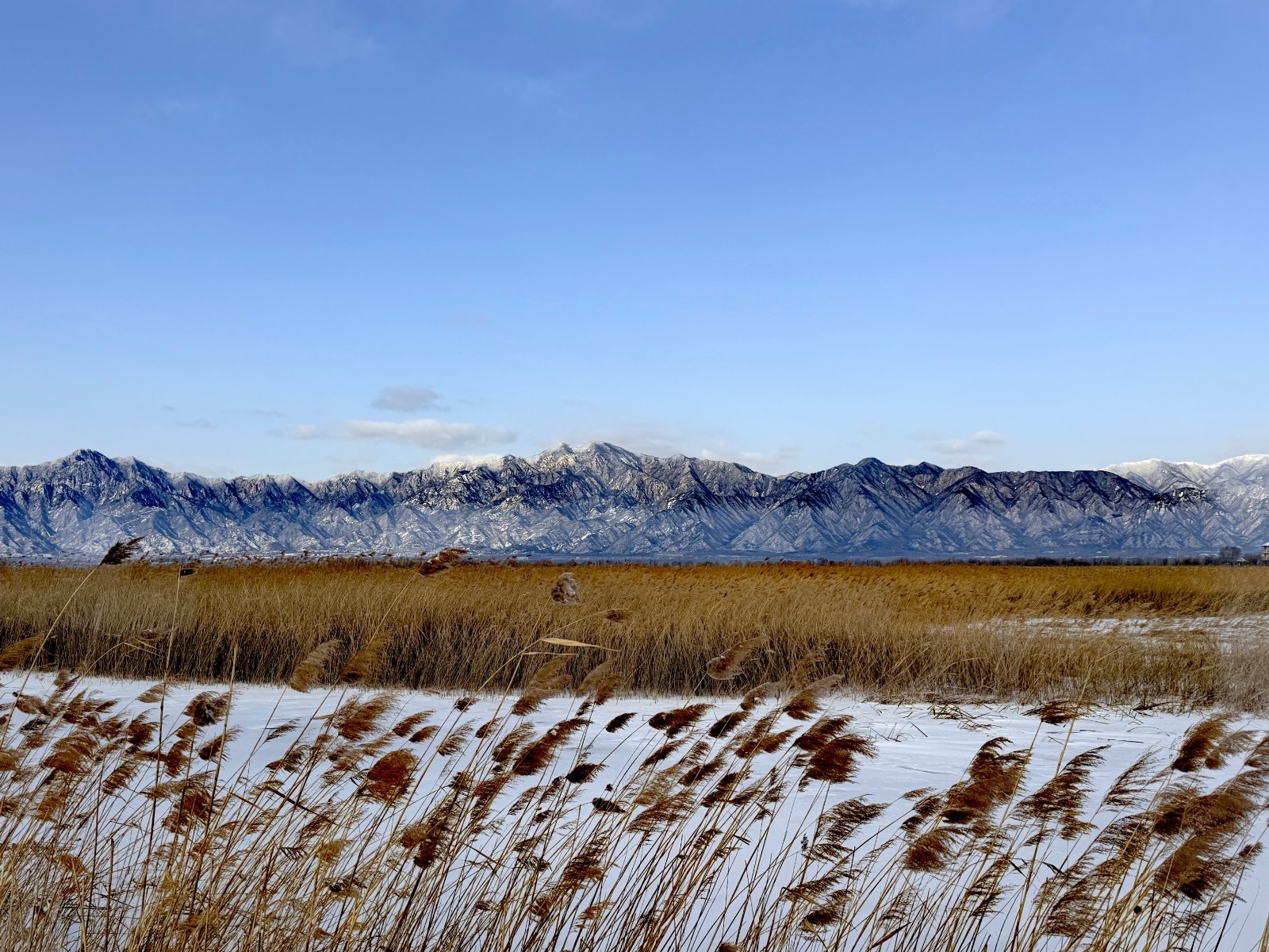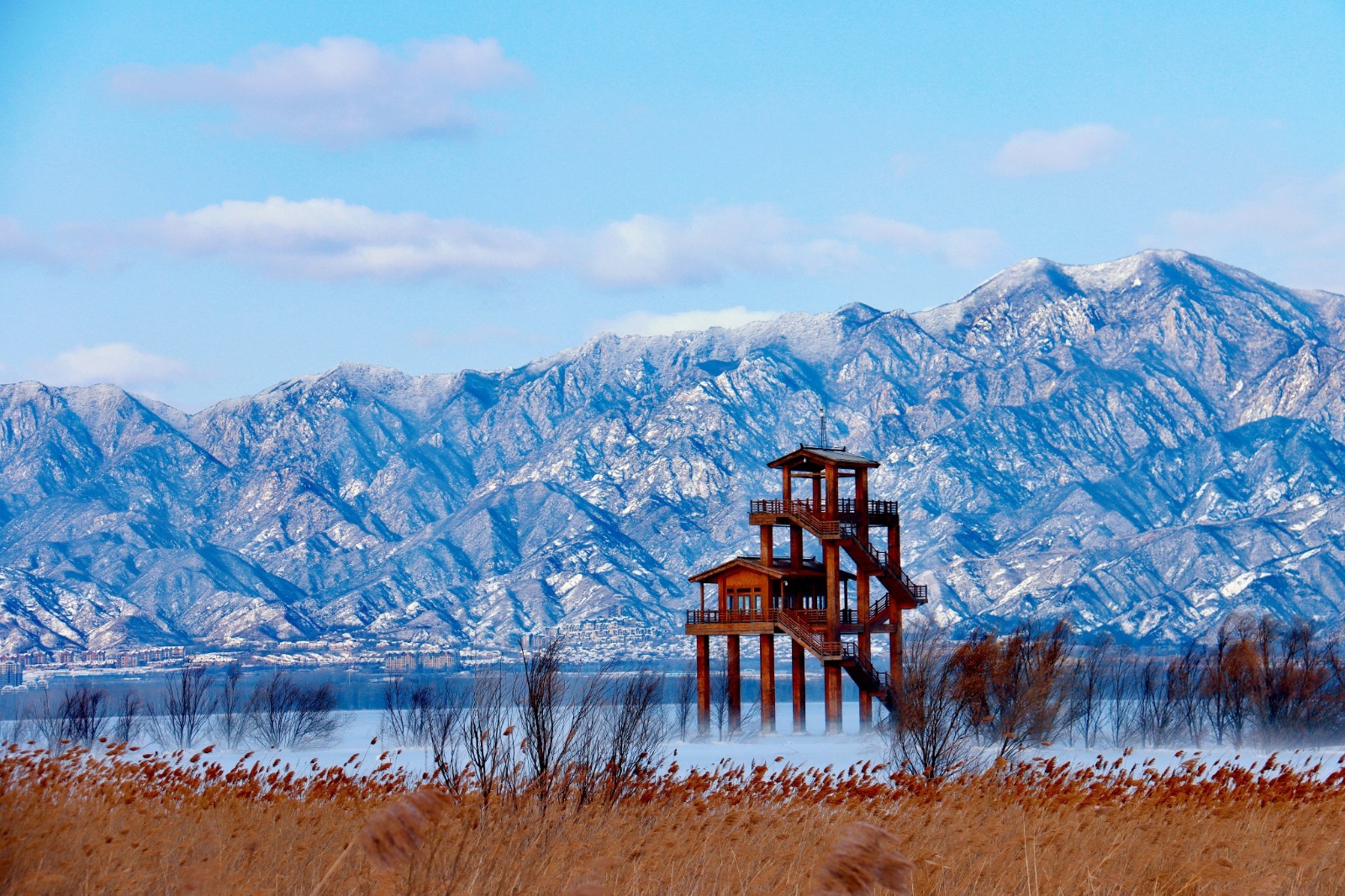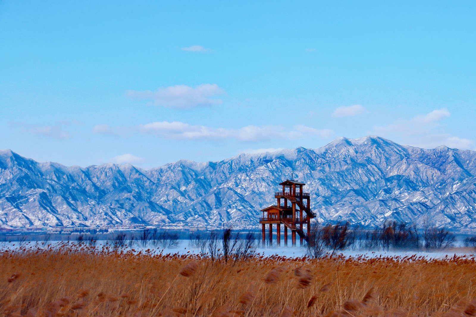 浩渺的湖面与无边的芦苇在雪的抚慰下连为一体,仿佛天地间铺开的一张巨幅宣纸,静待点睛之笔。