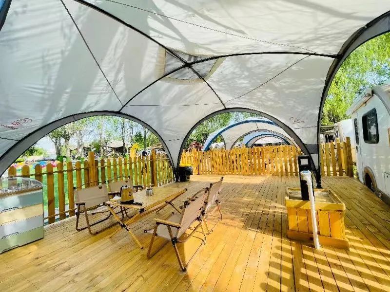 小镇的园区很大,设有咖啡厅,餐饮区、儿童乐园,萌宠区还有房车营地、帐篷区和天幕区等等,在这溜达几圈,你就是运动步数排名第一了。