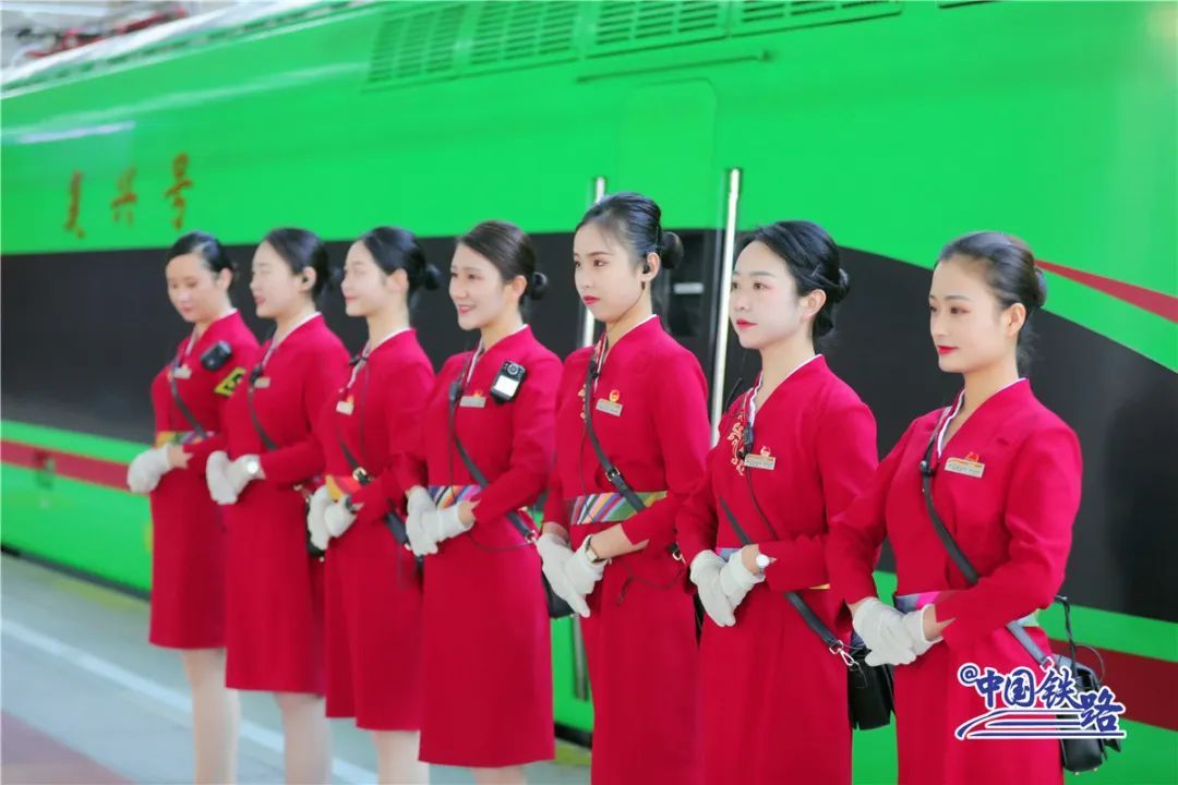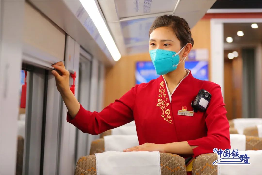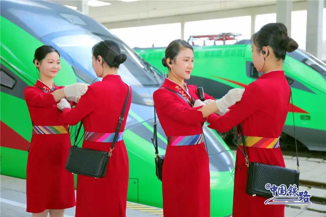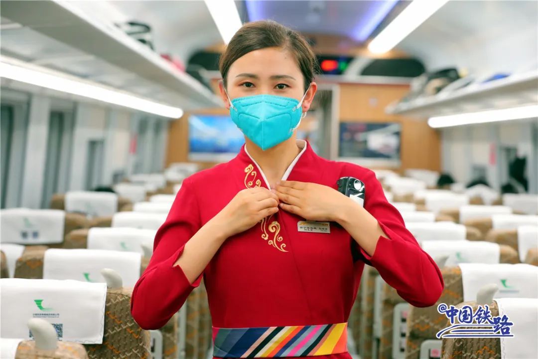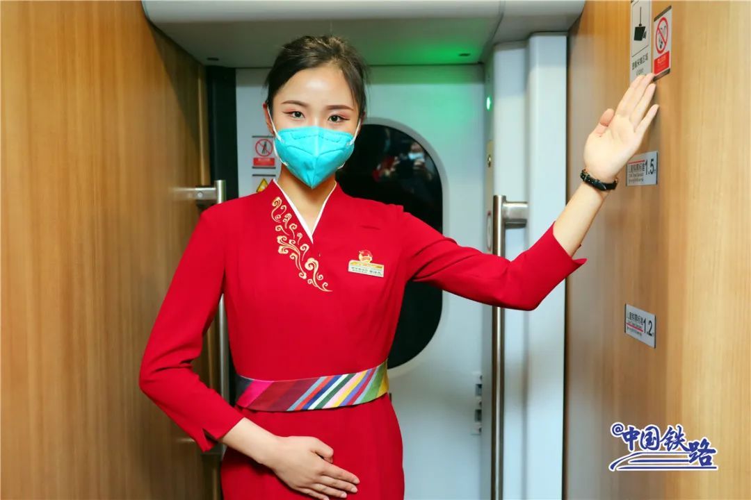 在奔跑的高原复兴号上,一身红衣的乘务员既是热心的翻译、导游,也是贴心的保健医生、旅行助手。甜美的微笑、优雅的举止,一切光鲜亮丽背后是姑娘们辛勤的付出。