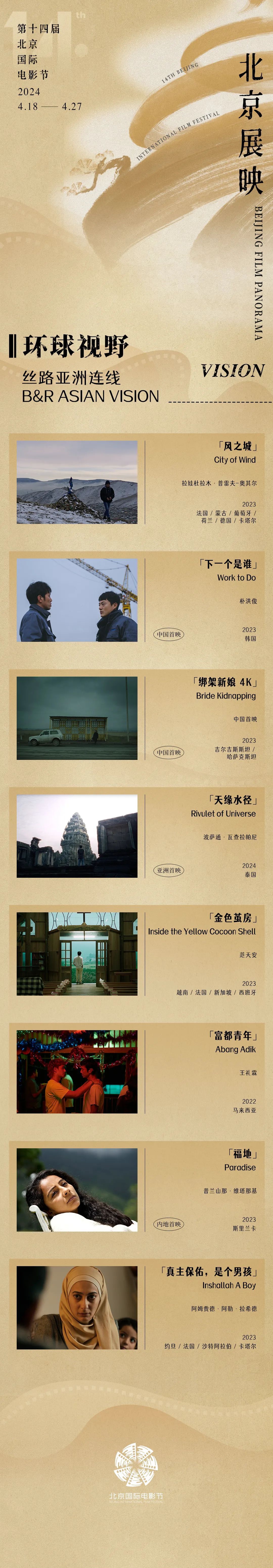 2024年北京国际电影节·北京展映推出“环球视野-丝路亚洲连线”单元,在2023年“丝路十年 联想未来:电影亚洲连线”特展后,将继续为观众带来“一带一路”沿线亚洲国家的优质影片。