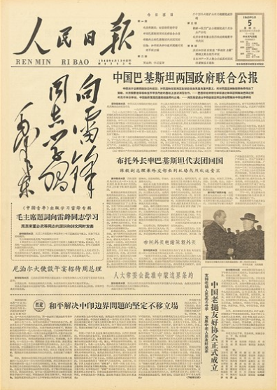 ▲一九六三年三月五日的人民日报头版。