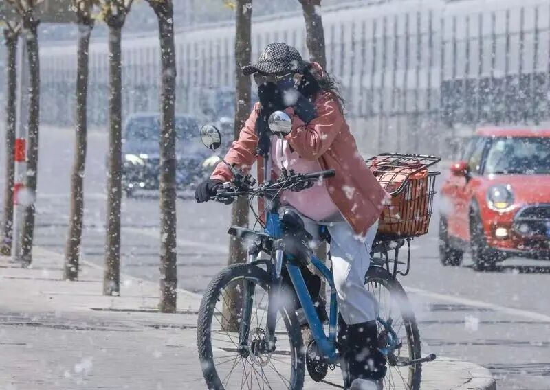 4月10日,西城区,市民在漫天飞絮中出行/来自中新社