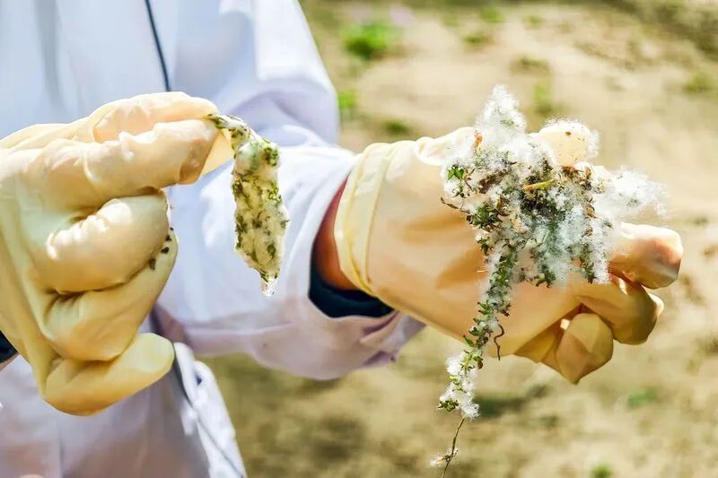 使用凝絮剂后,飞絮被紧紧包裹/北京日报邓伟拍摄