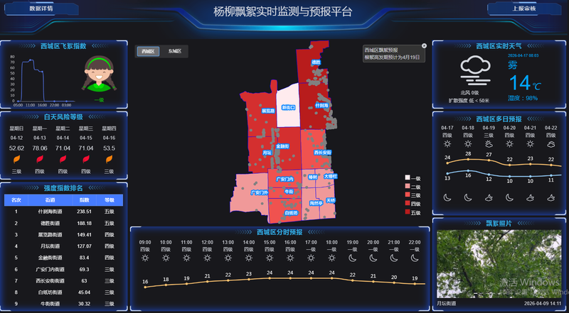 今年,北京首次搭建杨柳飞絮实时监测与预报平台,深度融合气象大数据与地面核查网络,目前已实现东西城等核心区域的街道级精准预报。