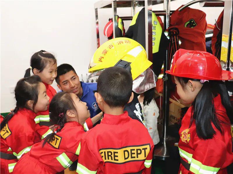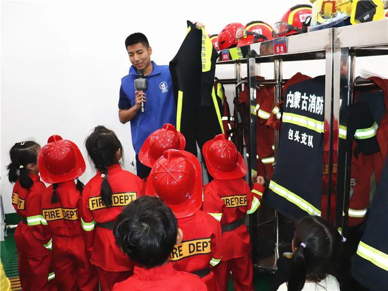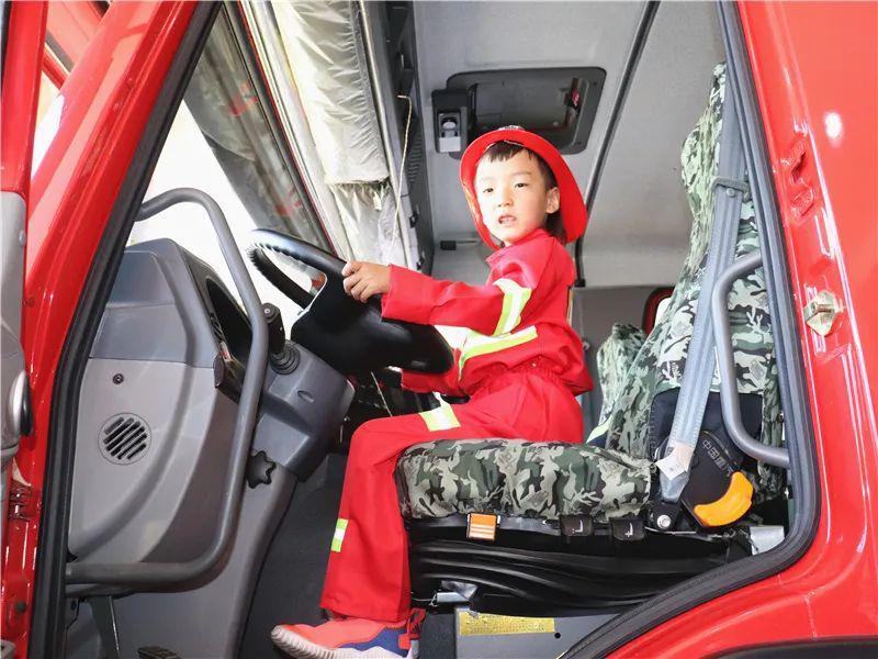 活动中,小朋友们还参观了消防救援车辆、灭火抢险救援装备、消防员战斗班等,孩子们忍不住发出阵阵兴奋的惊呼,并在消防队员的帮助下穿上战斗服、戴上头盔,当了一回英勇的“小小消防员”。