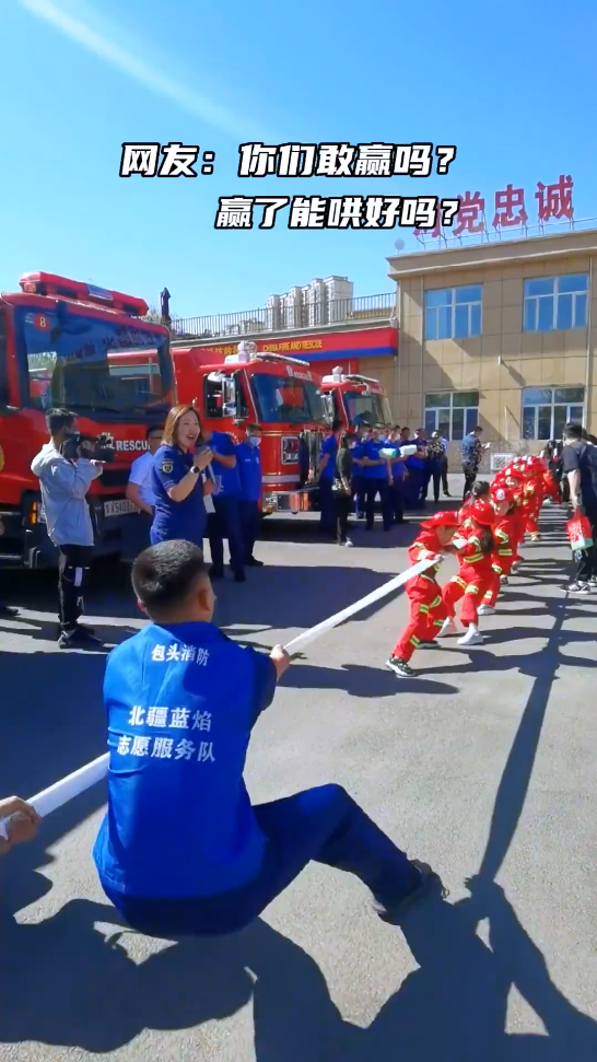 近日,包头消防的“蓝朋友”们和最可爱的小朋友举行了一场拔河比赛,平日里速度与力量并存的消防员们纷纷“输”给小朋友,更有最佳演员奋力躺在地上。网友:你们敢赢吗?赢了能哄好吗?