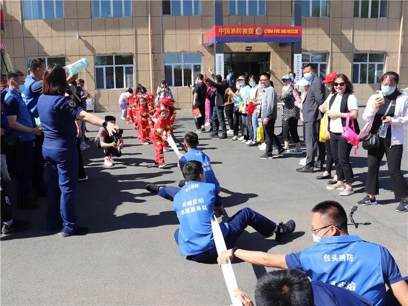 而拔河比赛中,平日里速度与力量并存的消防员们纷纷“输”给小朋友,更有最佳演员奋力躺在地上。