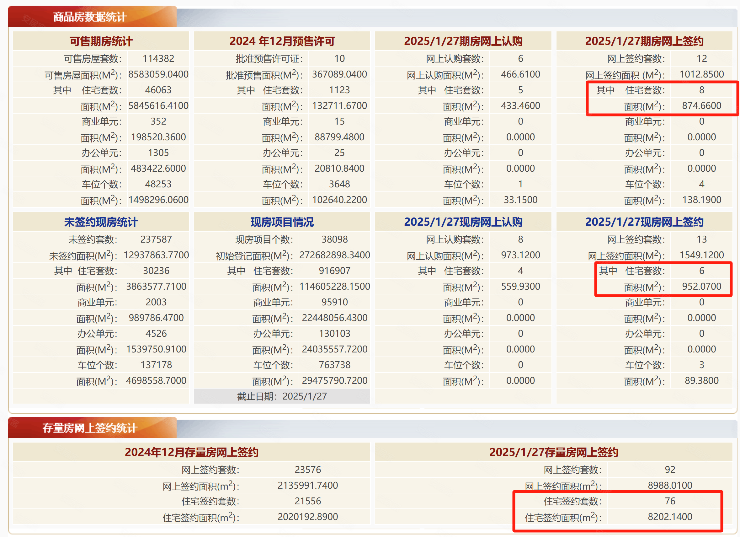 根据北京市住房和城乡建设委员会数据:1月27日,北京新房住宅网签14套,网签面积1826.73㎡:二手房住宅网签76套,网签面积8202.14㎡。