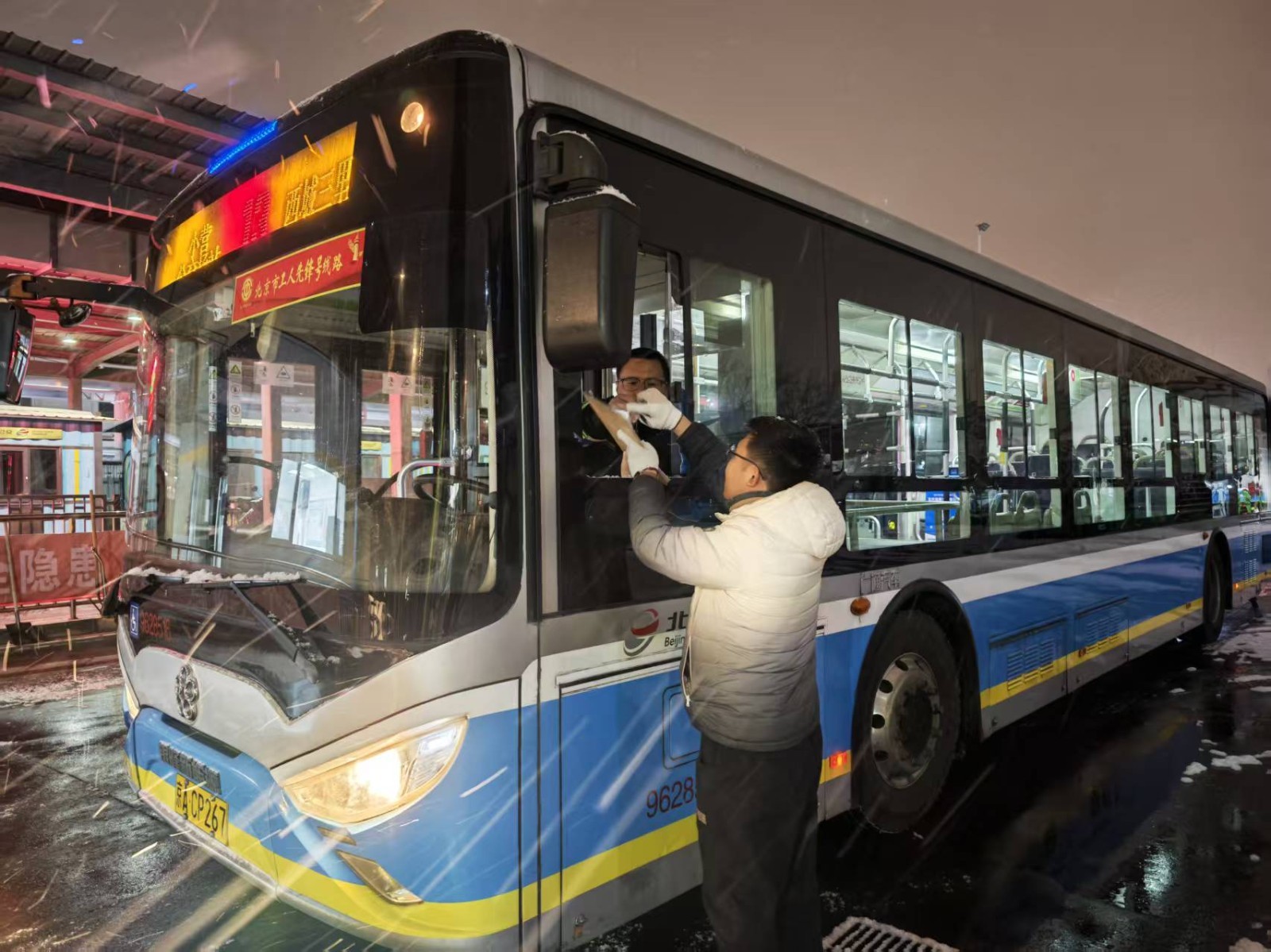 强化现场安全,提升服务品质。降雪期间,公交集团针对3.2万人次驾驶员开展雪天行车安全专项叮嘱;在全市重点道路、桥区、公交站台等区域设置507处安全服务岗点,组织1000余人次管理人员及乘务巡检员现场值守,指挥引导车辆安全通行并提供站台便民服务,全力保障乘客平安出行。同时,所有运营车辆全面开启车厢暖风系统,为100余条重点线路的车厢铺设1.1万余个座椅小棉垫,并利用运营间隙及时清理车内积雪,为乘客营造温暖整洁的乘车环境。