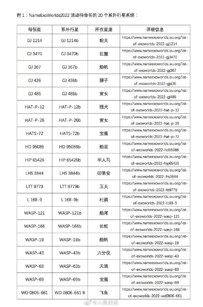 2022年新一期太阳系外世界命名活动正式启动,命名对象为20个太阳系外行星系统。