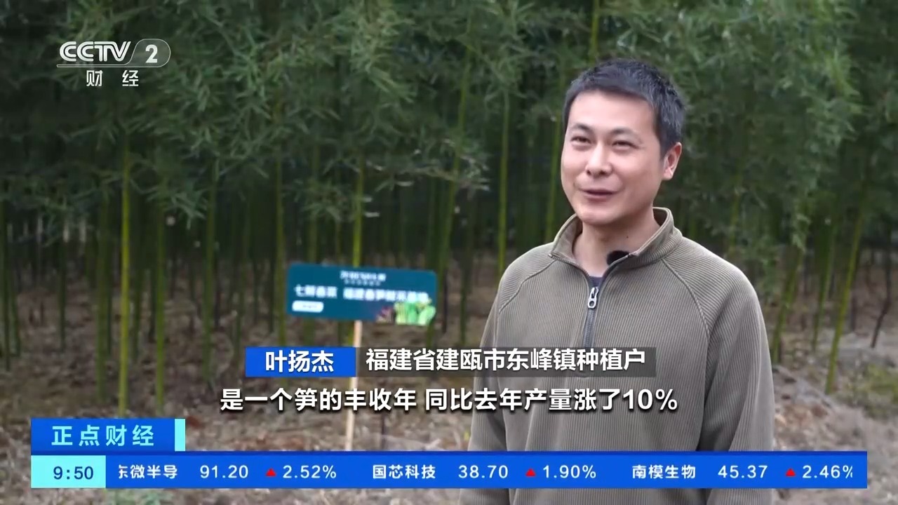 福建省建瓯市东峰镇种植户 叶扬杰:今年由于管理到位,天气也比较好,是笋的丰收年,同比产量涨了10%,精品笋比较多。